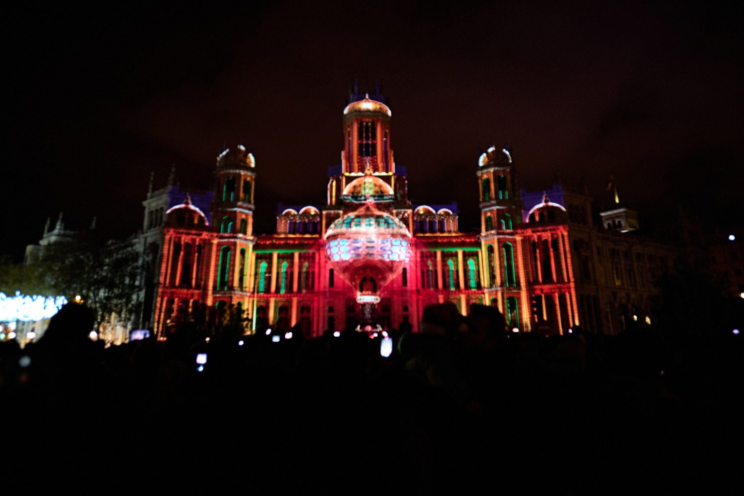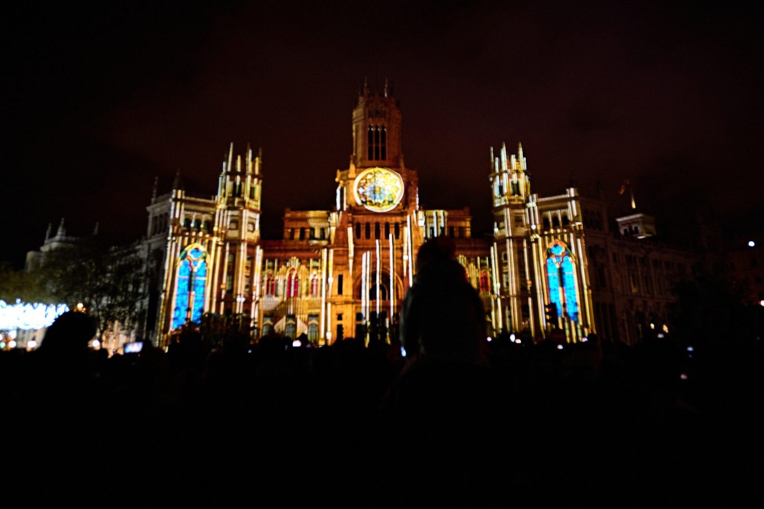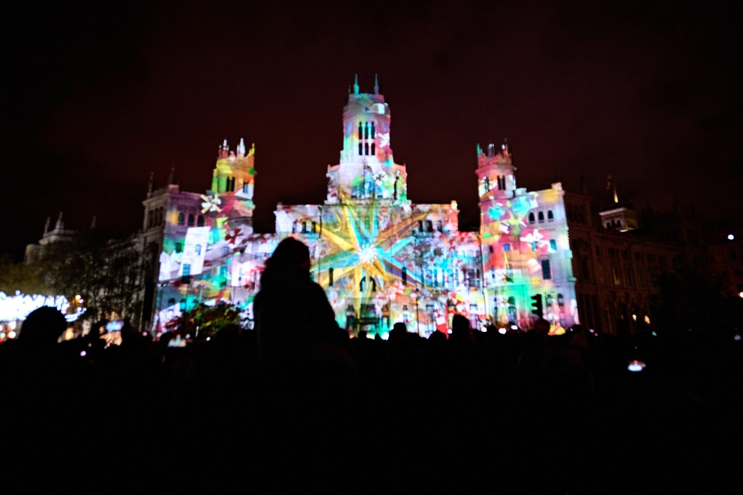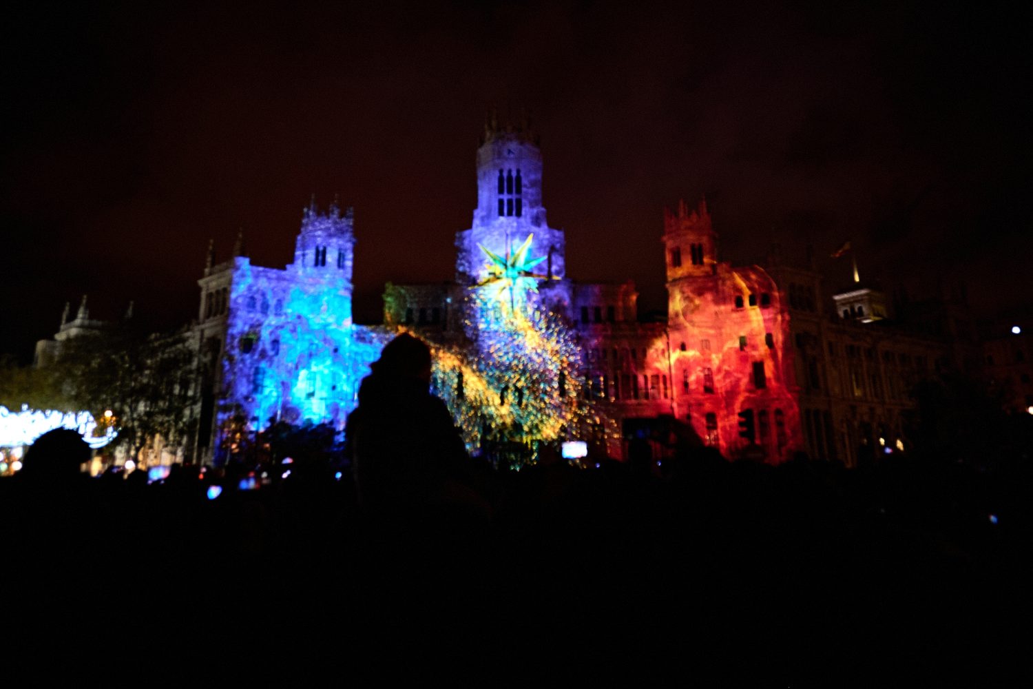 Madrileños y visitantes asistieron a la sorprendente puesta en escena audiovisual del videomapping, un viaje por la Navidad que aúna la simbología tradicional navideña, el arte y la innovación tecnológica, y que logró envolver en una atmósfera mágica a todos los asistentes.