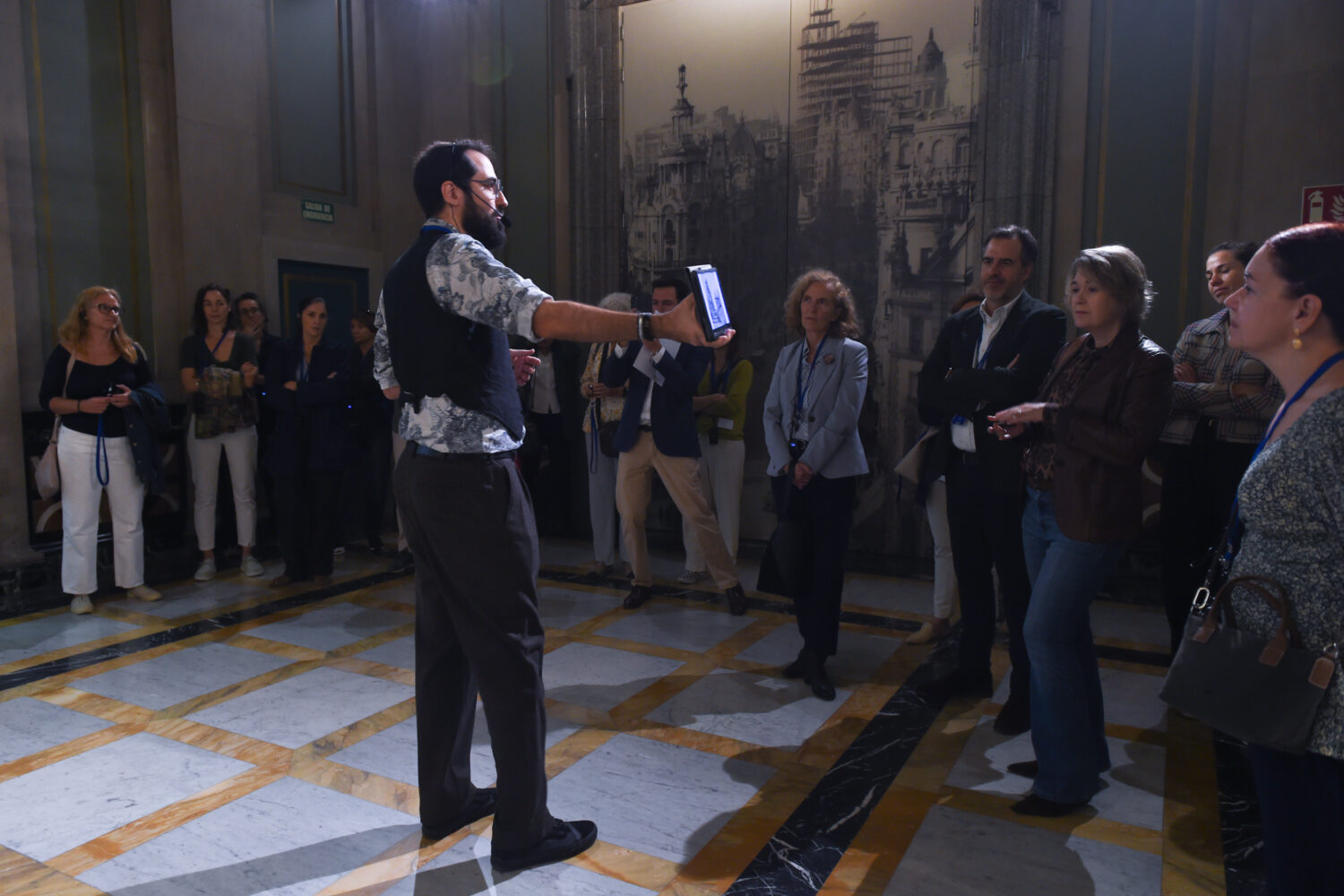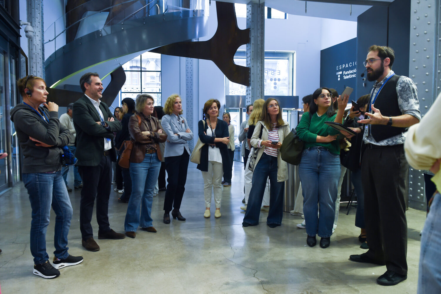 Durante el recorrido, la delegada ha estado acompañada de Pablo Gonzalo, director de Innovación cultural y Pensamiento crítico de Fundación Telefónica, quien ha agradecido que se ponga en valor este emblemático edificio de Madrid en esta nueva edición de ‘Madrid Otra Mirada’. Los visitantes han podido recorrer las instalaciones del Espacio Fundación Telefónica, que ocupan las cuatro primeras plantas del Edificio Telefónica. La visita ha permitido, además de un recorrido por las exposiciones en curso, asomarse a la historia del edificio histórico.