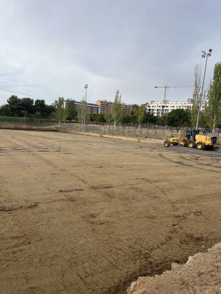 El proyecto incluye porterías, banquillos y otros equipamientos deportivos, junto con instalaciones de riego, drenaje e iluminación del campo. De hecho, ya se ha excavado todo el terreno de juego y esta semana se colocan las zahorras a nivel de cota de asfaltado. Ya están en fabricación el césped, báculos y proyectores de iluminación.
