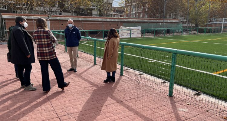 La concejala delegada de Deporte y concejala de Barajas, Sofía Miranda, acompañada por el presidente del Club Deportivo San Roque, David Portilla, ha visitado hoy las obras que se están llevando a cabo para mejorar la Instalación Deportiva Básica Coronales, sede del club de fútbol que gestiona la instalación.