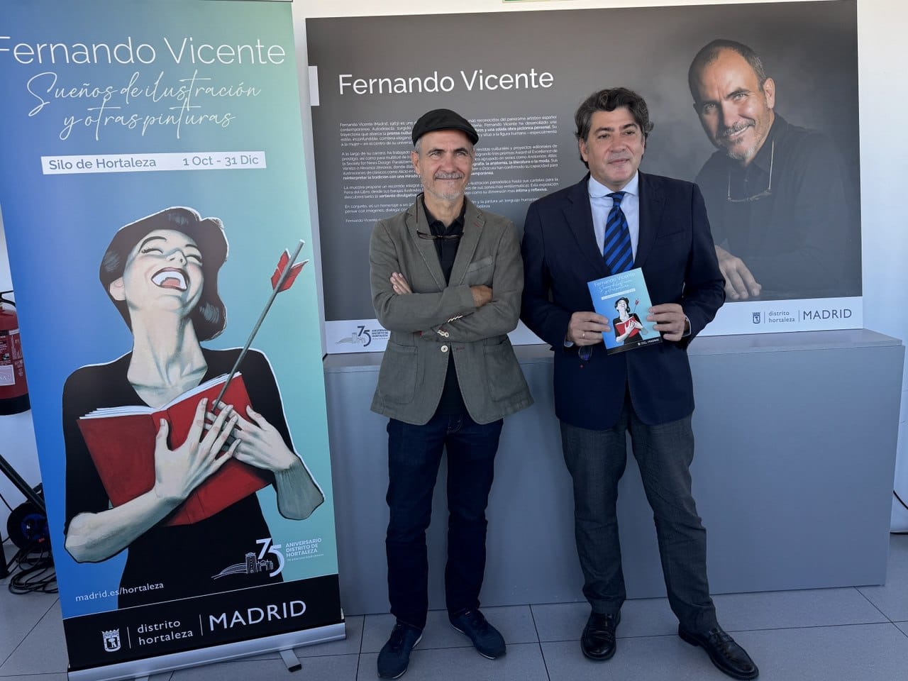 El concejal de Hortaleza, David Pérez, ha inaugurado hoy la nueva exposición instalada en el Espacio Cultural El Silo, Sueños de ilustración y otras pinturas, una colección de 200 obras de Fernando Vicente, uno de los ilustradores y pintores más reconocidos del panorama artístico español contemporáneo. La muestra, incluida dentro de la programación cultural del distrito, se puede visitar hasta el próximo 31 de octubre.