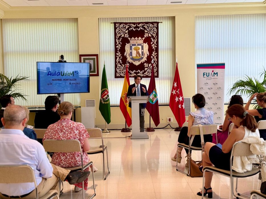 Los cursos del programa AulaUAM+50 se impartirán en un espacio del Centro Cultural Carril del Conde cedido por la Junta Municipal de Hortaleza, donde podrán participar un máximo de 160 alumnos. Del 16 de septiembre de 2024 al 31 de mayo de 2025, los alumnos matriculados se formarán sobre diversas áreas de conocimiento, desde tecnología y ciencias hasta humanidades y desarrollo personal. Pérez ha destacado esta iniciativa como “una excelente oportunidad para que los vecinos del distrito adquieran nuevas habilidades y competencias, así como estimular su aprendizaje a lo largo de la vida”.