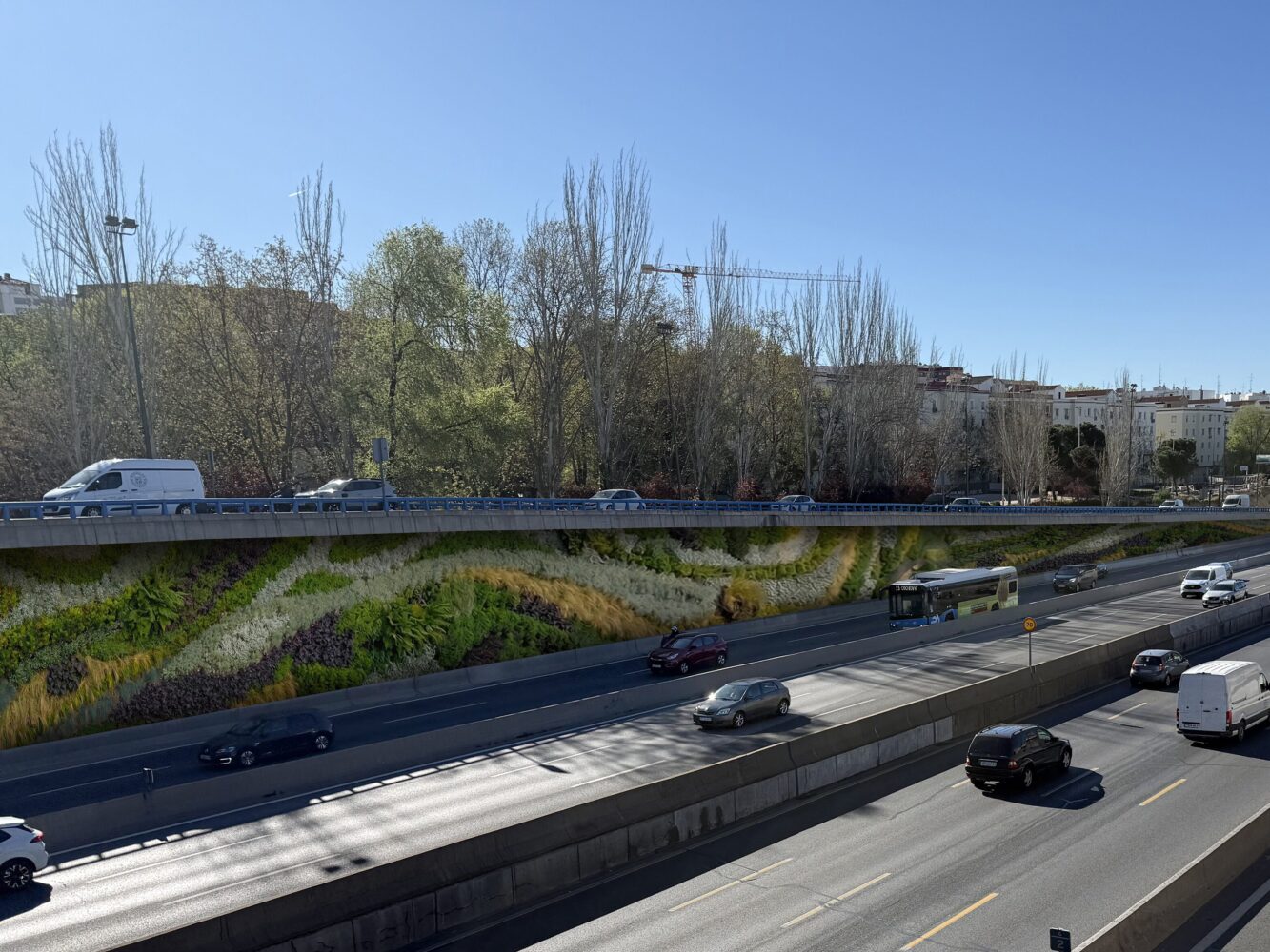 Los de Ventas serán los segundos jardines verticales que se instalan en la M-30, tras los de la avenida de la Ilustración, puestos en marcha en 2023. Aquella actuación, con una extensión de 3.250 m², ha contribuido a la calidad del aire, a la reducción del ruido y al fomento de la biodiversidad en el entorno urbano. /
