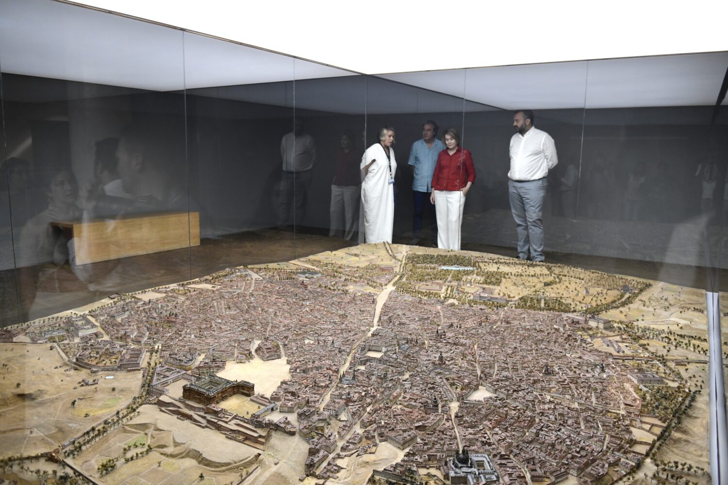 La delegada de Cultura, Turismo y Deporte, Marta Rivera de la Cruz, acompañada del concejal de Centro, Carlos Segura, ha visitado esta mañana el Museo de Historia de Madrid para comprobar el estado final de los trabajos de restauración de la maqueta de Gil de Palacio, un modelo cartográfico de grandes dimensiones que representa el Madrid del siglo XIX. La pieza, considerada uno de los documentos cartográficos más precisos de la época, volverá a exhibirse al público este viernes, coincidiendo con la festividad de la Virgen de la Paloma, en una nueva ubicación dentro del museo que permitirá mejorar su visibilidad y accesibilidad.