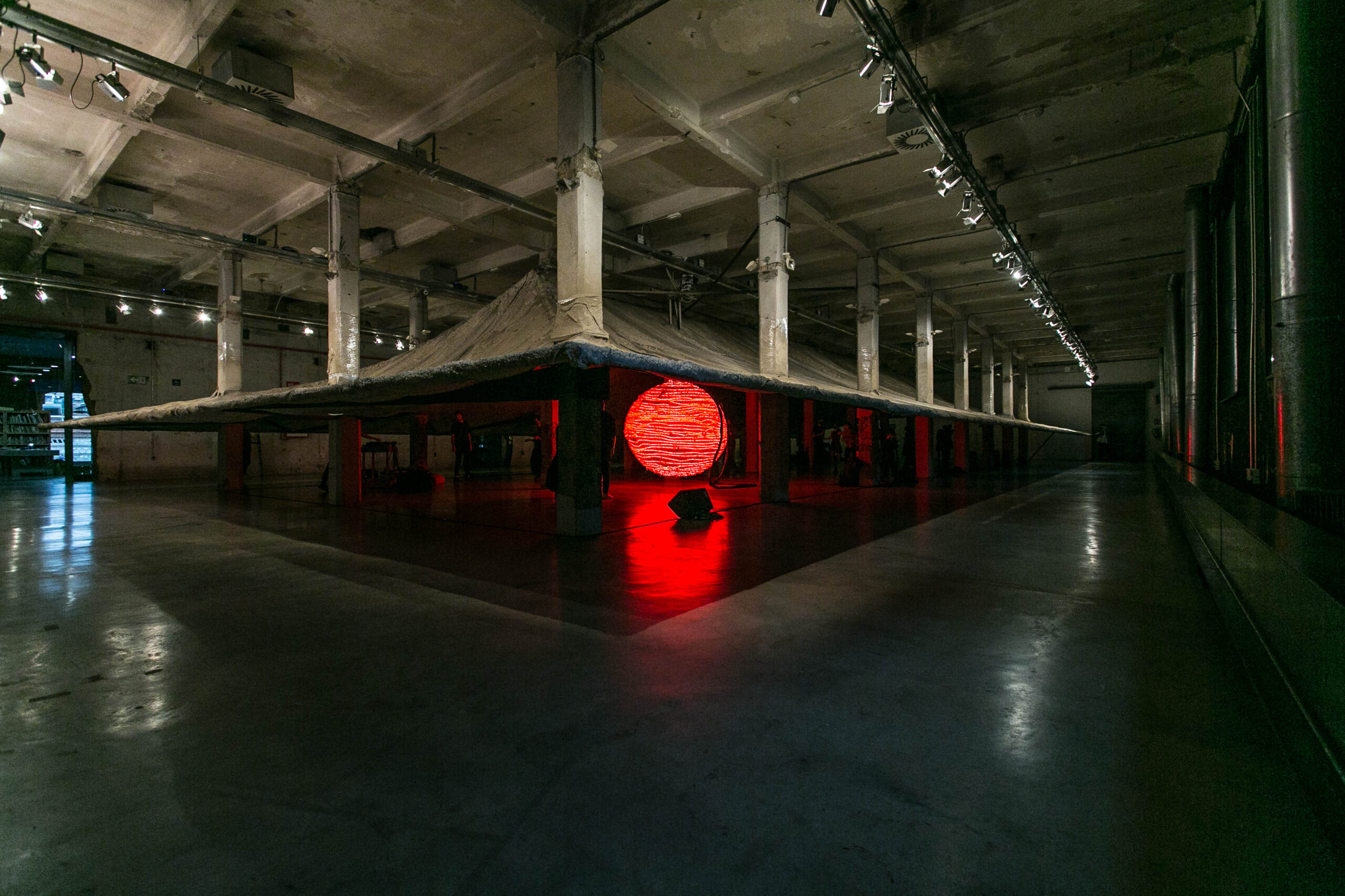 Caparazón o cueva abstracta, la intervención está concebida como un objeto y como un lugar al mismo tiempo, lista para acoger a sus visitantes, pero también para transformarse con ellos. La pieza adquirirá movimiento, vida o, incluso, consciencia propia al ser habitada. En su interior, la enorme bola de luz que domina el espacio define el lugar de encuentro como si se tratara de un fuego junto al que congregarse como nuevos primitivos e inventar novedosos rituales para este momento tan difícil que nos está tocando vivir.