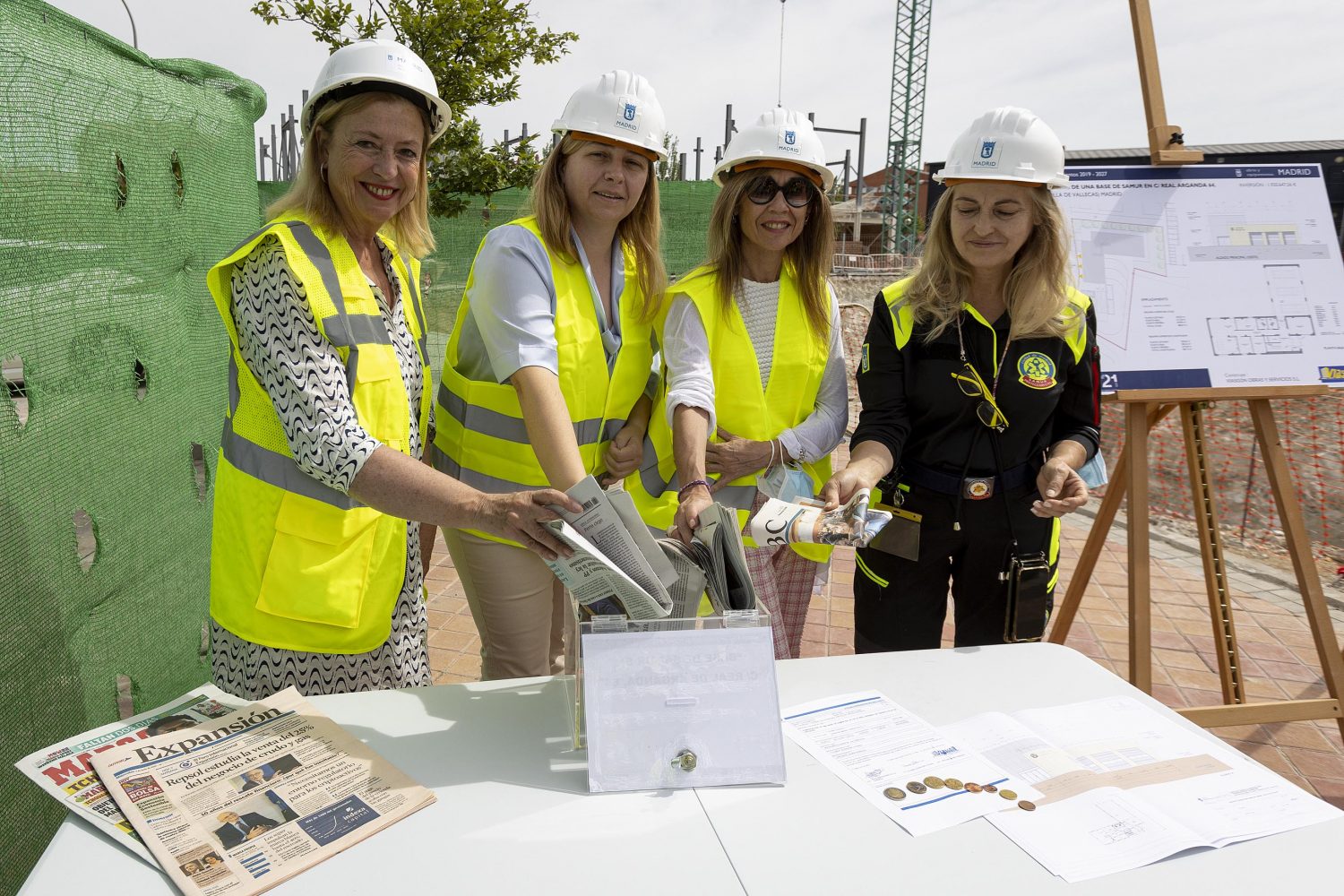 La delegada de Obras y Equipamientos, Paloma García Romero, y la delegada de Seguridad y Emergencias y portavoz municipal, Inmaculada Sanz, han colocado esta mañana la primera piedra de la nueva base de SAMUR-Protección Civil que el Ayuntamiento va a construir en la calle Real de Arganda, 64, en el distrito de Villa de Vallecas. Los trabajos, que finalizarán en el verano de 2023, suponen una inversión de 1,9 millones de euros.