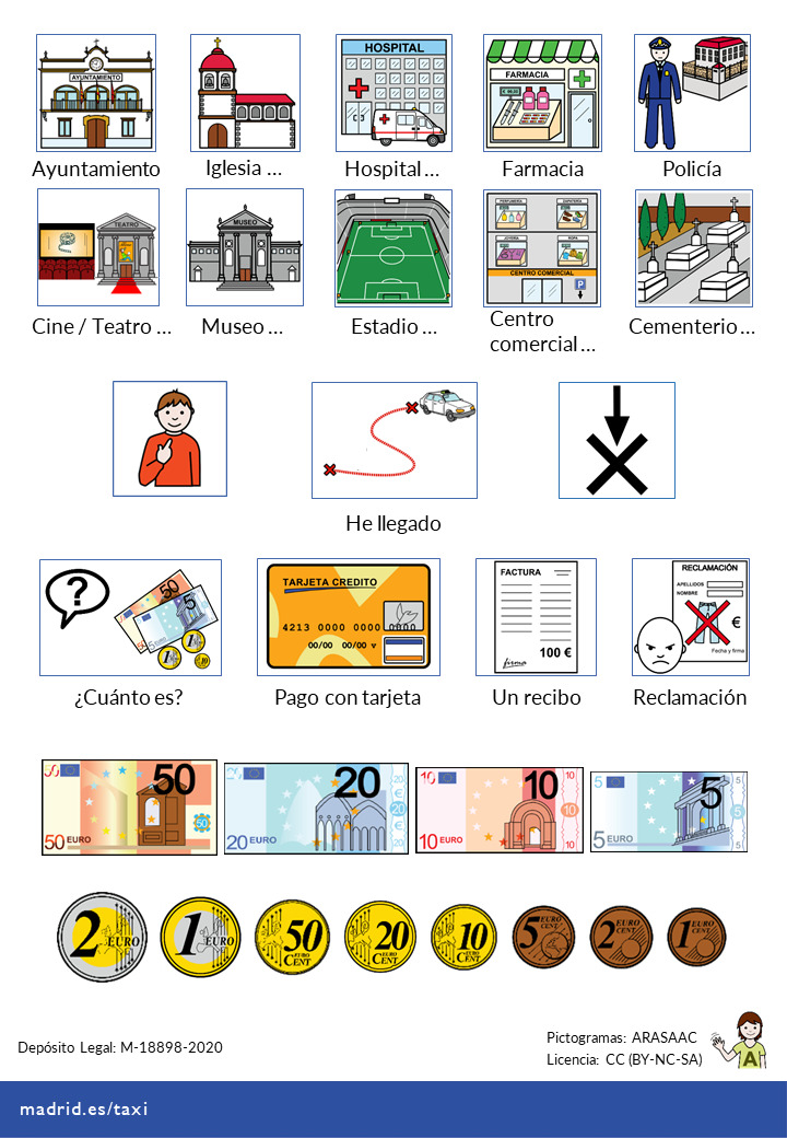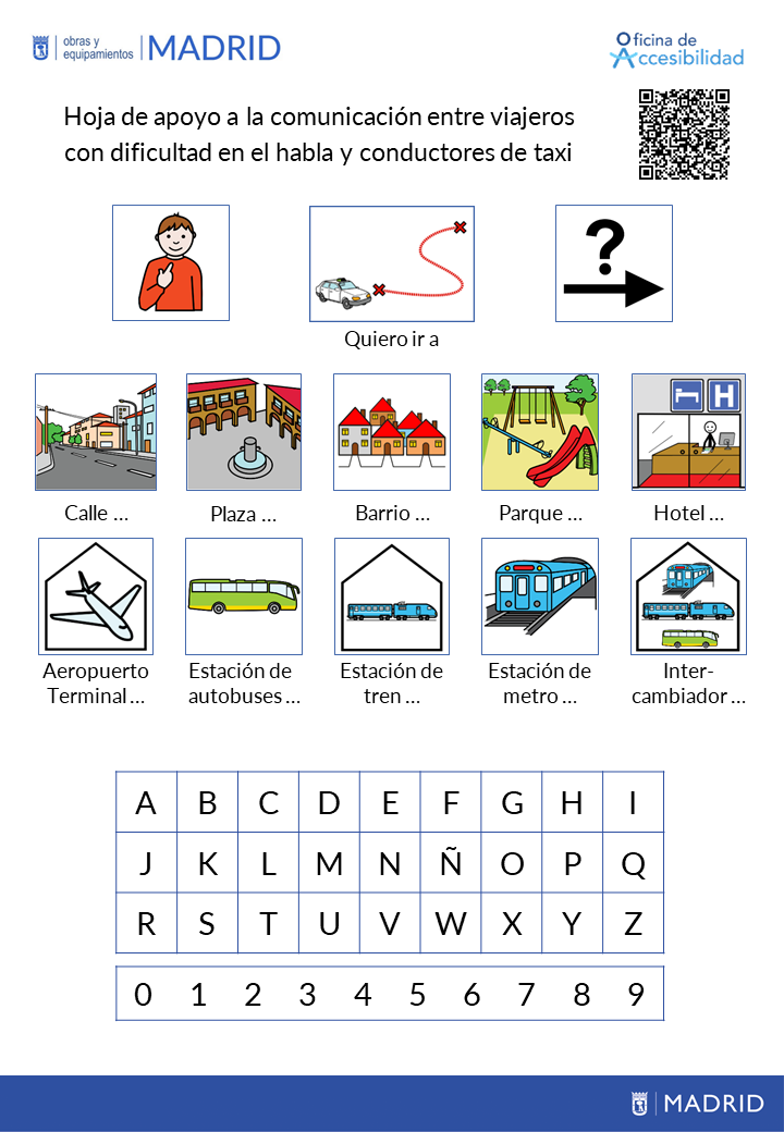 El Área de Obras y Equipamientos, a través de la Oficina de Accesibilidad, ha creado una hoja de apoyo a la comunicación para taxis que facilitará a los viajeros con dificultad en el habla dar las indicaciones para el destino del viaje y el pago. El documento, que también será útil para otros contextos de difícil comunicación, se basa en el uso de pictogramas.