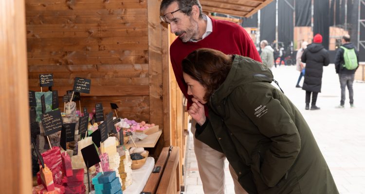 La concejala de Tetuán, Paula Gómez-Angulo, ha visitado esta mañana el mercadillo de Navidad instalado en la plaza de la Remonta, un enclave que este año acoge un programa cultural con una decena de propuestas entre teatro, música y actuaciones, además de talleres de manualidades de temática navideña.