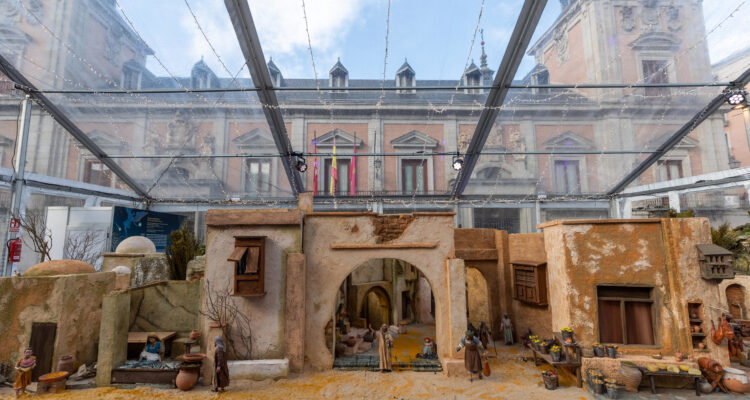 Unos días más tarde, el próximo 10 de diciembre, el Museo de San Isidro. Los orígenes de Madrid (plaza de San Andrés, 2) abrirá al público en su patio renacentista un tradicional belén popular que contará con figuras realistas de tipo hebreo y una escenografía realizada exprofeso para un espacio tan singular. En el centro, sobre la fuente y ocultándola, se situará una estructura de 16 metros cuadrados en la que se dispondrán el portal y el pueblo de Belén, así como el castillo de Herodes. Su ubicación en el centro del patio permitirá una excelente visibilidad y su contemplación desde diferentes puntos de vista. Se podrá visitar hasta el 17 de enero, de 10:00 h a 20:00 h.
