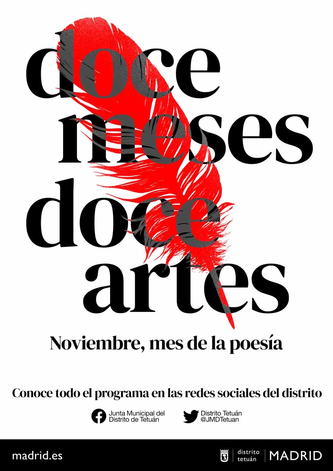 El distrito de Tetuán dedica a la poesía el mes de noviembre con motivo del certamen ‘doce meses, doce artes’, un programa que cada mes piensa su programación para un arte específico, acercando cada disciplina a la ciudadanía. Arranca mañana martes, 8 de noviembre, con la inauguración de la muestra Jóvenes mujeres poetas, Generación 22, a las 18:30 h, en el Centro Cultural Eduardo Úrculo.
