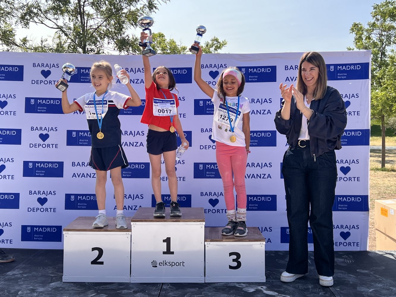 La concejala de Barajas, Sofía Miranda, ha entregado esta mañana los trofeos del I Cross Escolar, en el que han participado 1.622 escolares de primaria de cinco centros educativos del distrito: Alameda de Osuna, Calderón de la Barca, Ciudad de Guadalajara, Ciudad de Zaragoza y San Pedro Apóstol.