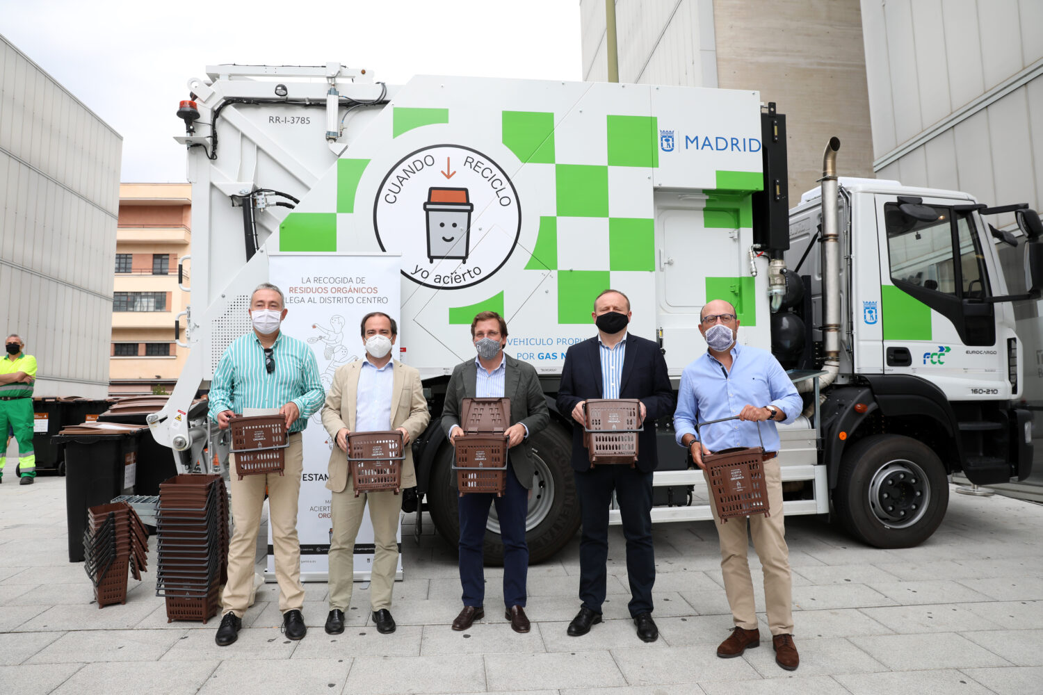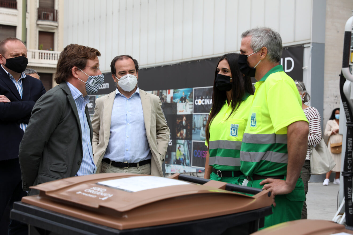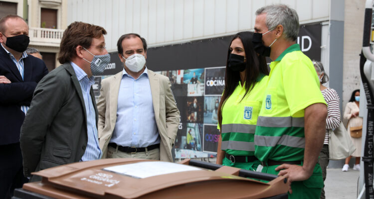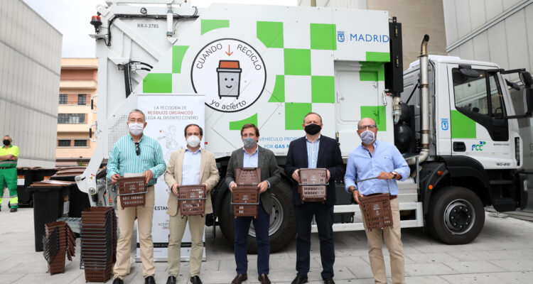 Madrid ha implantado ya la recogida del cubo marrón en la totalidad de sus distritos y, hoy, el alcalde, José Luis Martínez Almeida, ha visitado el distrito de Centro, que desde la pasada noche se ha sumado a la separación, recogida y tratamiento de los residuos orgánicos para hacer de Madrid una ciudad más limpia, sostenible y acorde con la legislación europea en materia de medioambiente y gestión de residuos. Los delegados de Medio Ambiente y Movilidad, Borja Carabante, y de Economía, Innovación y Empleo, Miguel Ángel Redondo, así como concejal del distrito de Centro, José Fernández, le han acompañado en esta visita.