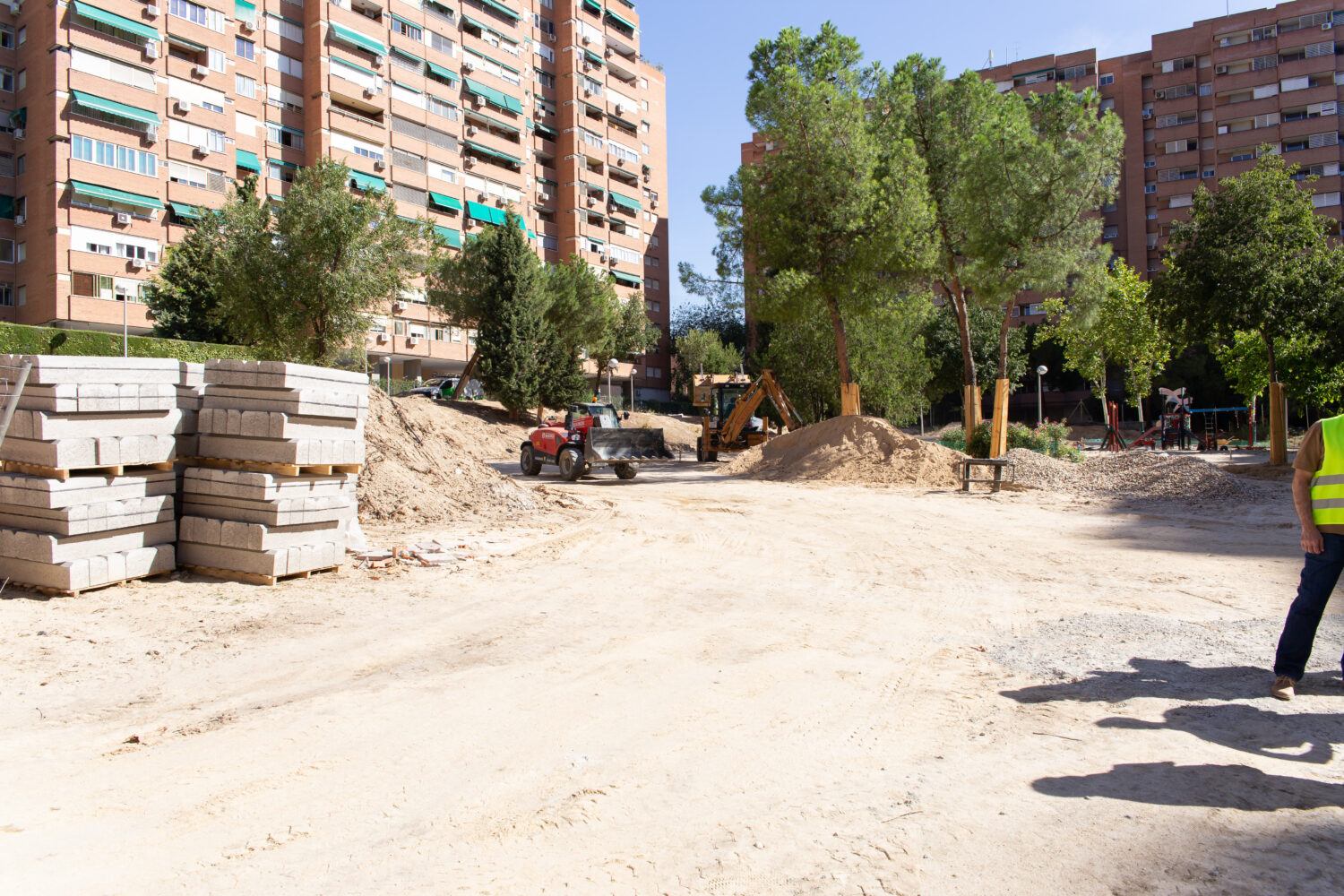 La zona, con una superficie aproximada de 10.150 metros cuadrados, se configura como un parque urbano que conecta las calles Torrelaguna, Condesa de Venadito y avenida de Badajoz. El proyecto se inició el pasado 27 de mayo, tiene una duración de cinco meses y cuenta con un presupuesto de 572.308 euros.