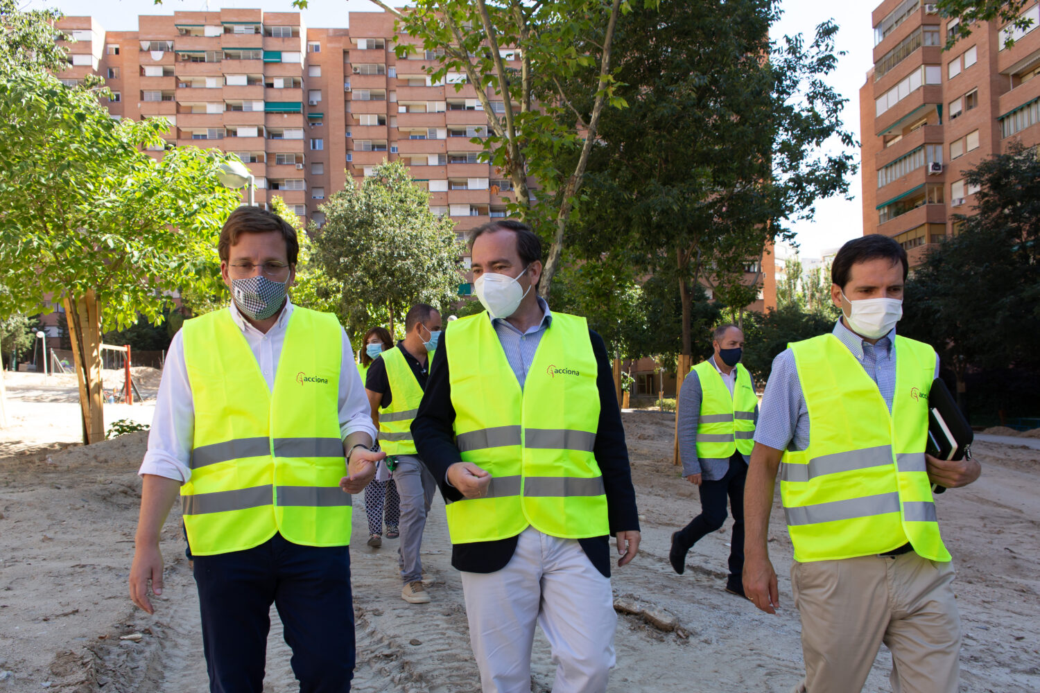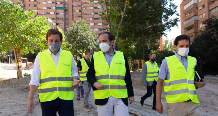 El alcalde de Madrid, José Luis Martínez-Almeida, ha visitado esta mañana, junto con el delegado de Medio Ambiente y Movilidad, Borja Carabante, las obras del parque urbano de la plaza de Nueva Orleans, situado en la zona central del distrito de Ciudad Lineal. El parque está siendo reformado integralmente para dar solución a las deficiencias detectadas y potenciar los espacios de reunión y descanso.