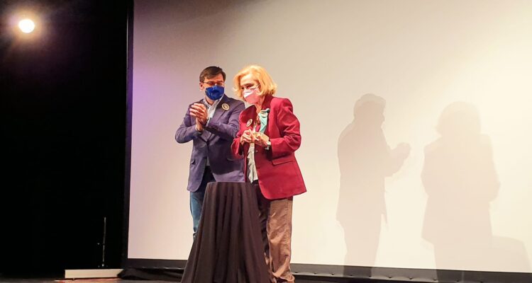 El homenaje se ha personalizado en la actriz María José Alfonso, a la que el concejal del distrito, Álvaro González, ha hecho entrega de una distinción por su larga trayectoria cinematográfica. Alfonso, junto al actor Máximo Valverde, ha presentado su última película Amalia en otoño.