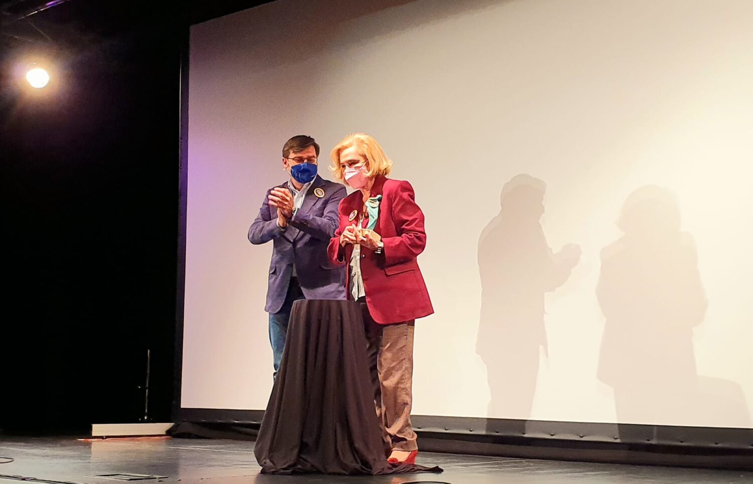 El homenaje se ha personalizado en la actriz María José Alfonso, a la que el concejal del distrito, Álvaro González, ha hecho entrega de una distinción por su larga trayectoria cinematográfica. Alfonso, junto al actor Máximo Valverde, ha presentado su última película Amalia en otoño.