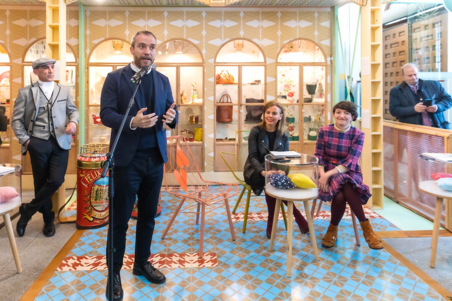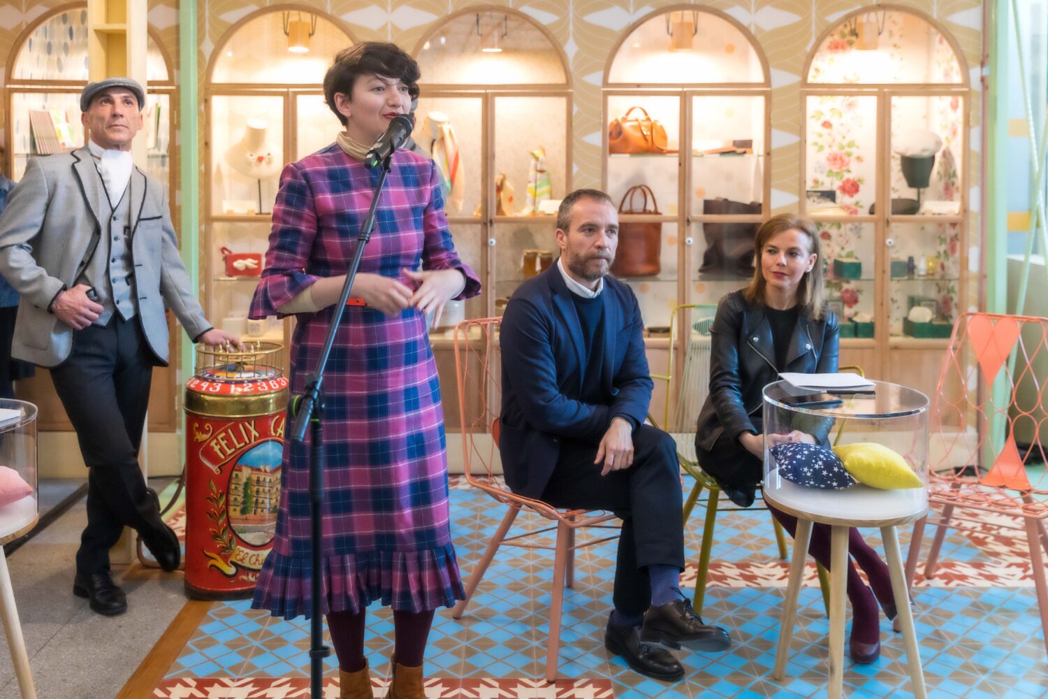 En este proyecto han colaborado también artistas, diseñadores y artesanos de Madrid que han cedido materiales con los que habitualmente trabajan y han personalizado piezas exclusivas para la tienda. Se trata de Andrés Gallardo, gran joyero reconocido por sus creaciones en porcelana; Inés Aguilar (La Casita de Wendy), especialista en moda sostenible; Iván Alvarado (L’Atelier del Mosaista), productor artesanal de baldosa hidráulica; Isabel Marías (Elisabeth Blumen), florista y paisajista; y Antonio Morcillo, productor artesanal de sillas.
