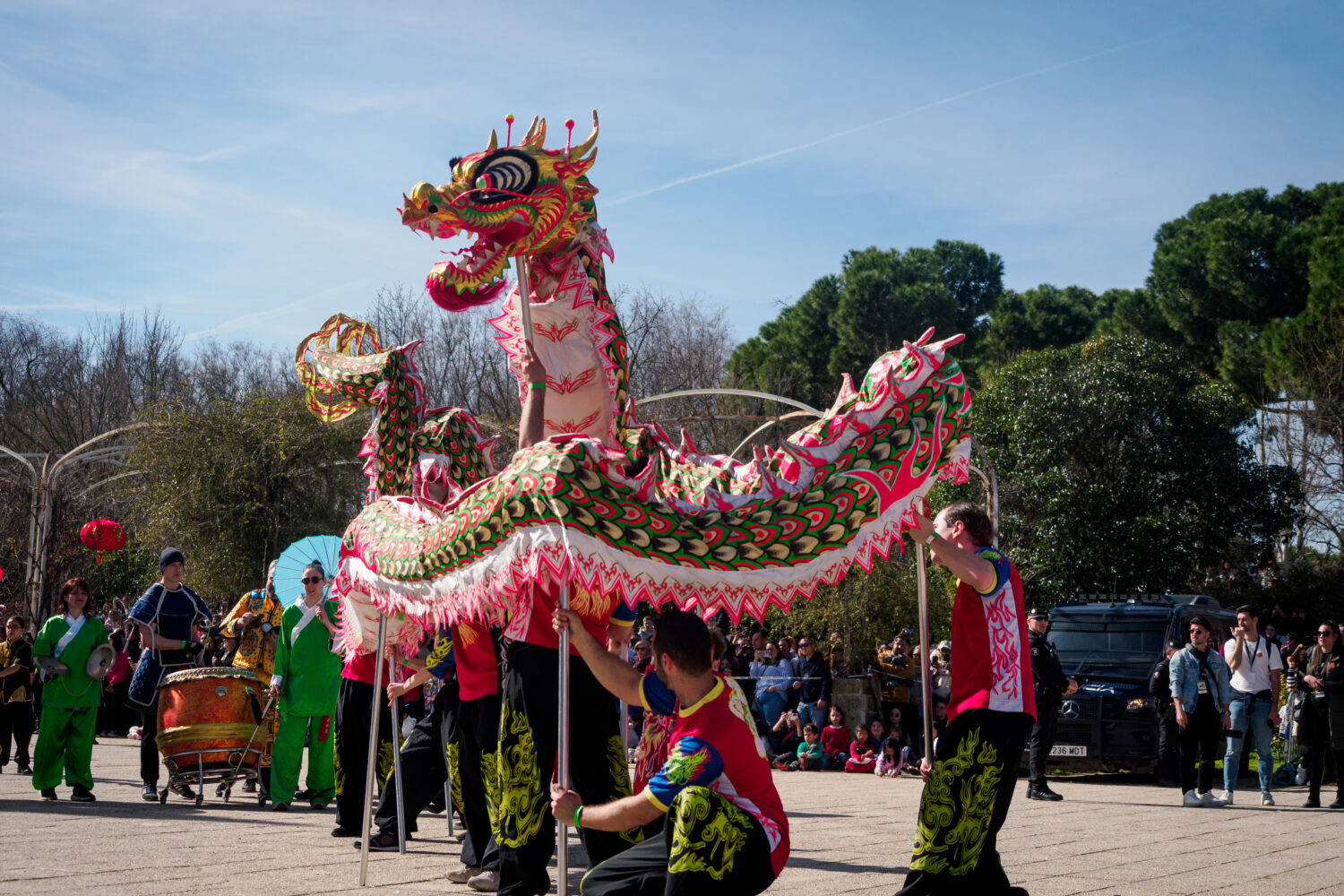 Las comparsas de asociaciones de la comunidad china, luciendo sus trajes tradicionales, junto con los alumnos del Instituto Confucio de Madrid y escolares del distrito, han transformado el parque en un gran escenario al aire libre lleno de música, color y creatividad. El público ha podido disfrutar de exhibiciones de artes escénicas y marciales, artistas de circo y malabaristas, majestuosos caballos hinchables, así como del tradicional desfile de dragones y leones chinos que, al ritmo de tambores, gongs y platillos, ha llenado el entorno de energía para atraer la prosperidad y la buena fortuna. Los asistentes también han sido testigos de coreografías y vistosos disfraces inspirados en el caballo de fuego, símbolo del año que comienza.