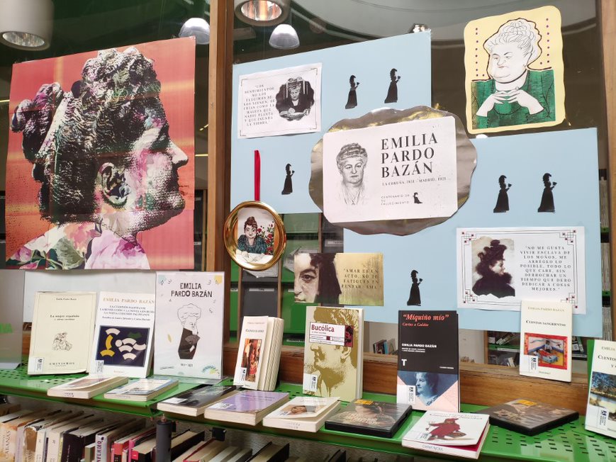 La Biblioteca Histórica Municipal se suma a la conmemoración del centenario con una exposición en la que mostrará diversos fondos que guardan relación con la escritora. La muestra se inicia con una breve explicación sobre su entorno familiar y la privilegiada formación cultural que recibió, teniendo en cuenta la época y su condición de mujer, así como una relación de los apuntes autobiográficos incluidos en Los Pazos de Ulloa (en un ejemplar de la edición de 1886) o de sus lecturas juveniles como la Biblia, La Ilíada, o las obras del Alessandro Manzoni.
