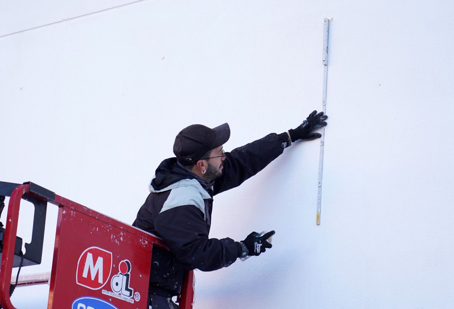 Durante la ejecución de los murales el Ayuntamiento ha previsto la participación de la ciudadanía interesada en pintar conjuntamente con los artistas, para lo que se han reservado unos días específicos en cada uno de los distritos. En el caso del mural de la Biblioteca Pública Francisco Ayala, los trabajos han comenzado hoy. El artista Michelangelo Marra ha iniciado los primeros trazados de la cuadrícula que le servirá para guiar el desarrollo del mural Patrón positivo, en el que, hasta el viernes (día en el que se prevé que esté finalizado) pueden participar los vecinos del distrito.