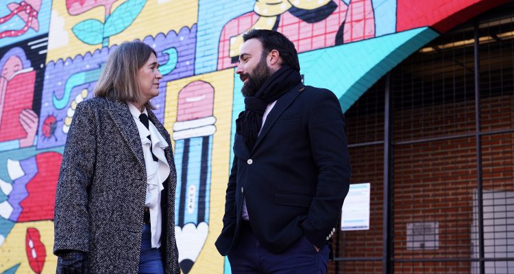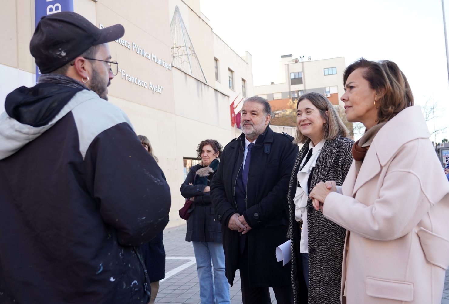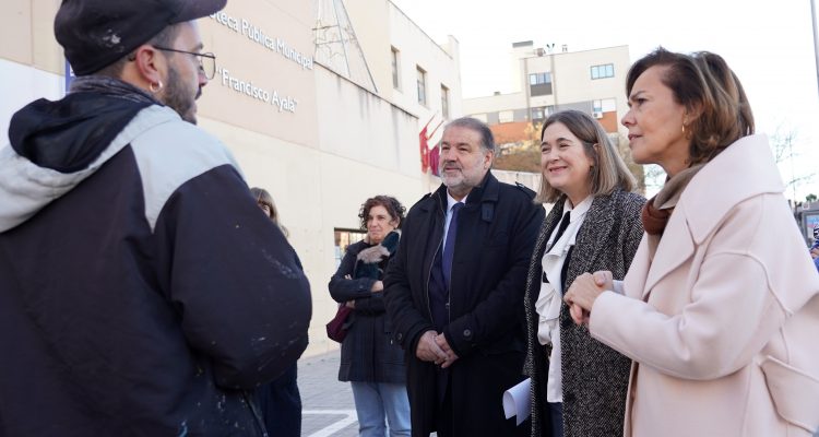 Seis bibliotecas públicas municipales lucirán en sus fachadas antes de que finalice 2023 los murales de arte urbano que forman parte de ‘Compartiendo muros’, un proyecto de creación colaborativa del Área de Cultura, Turismo y Deporte que persigue fomentar la lectura mediante intervenciones artísticas que mejoran el paisaje urbano en espacios de titularidad municipal. En la primera fase de esta segunda edición participan artistas y vecinos de Arganzuela, Fuencarral-El Pardo, Puente de Vallecas, Hortaleza, Vicálvaro y San Blas-Canillejas.