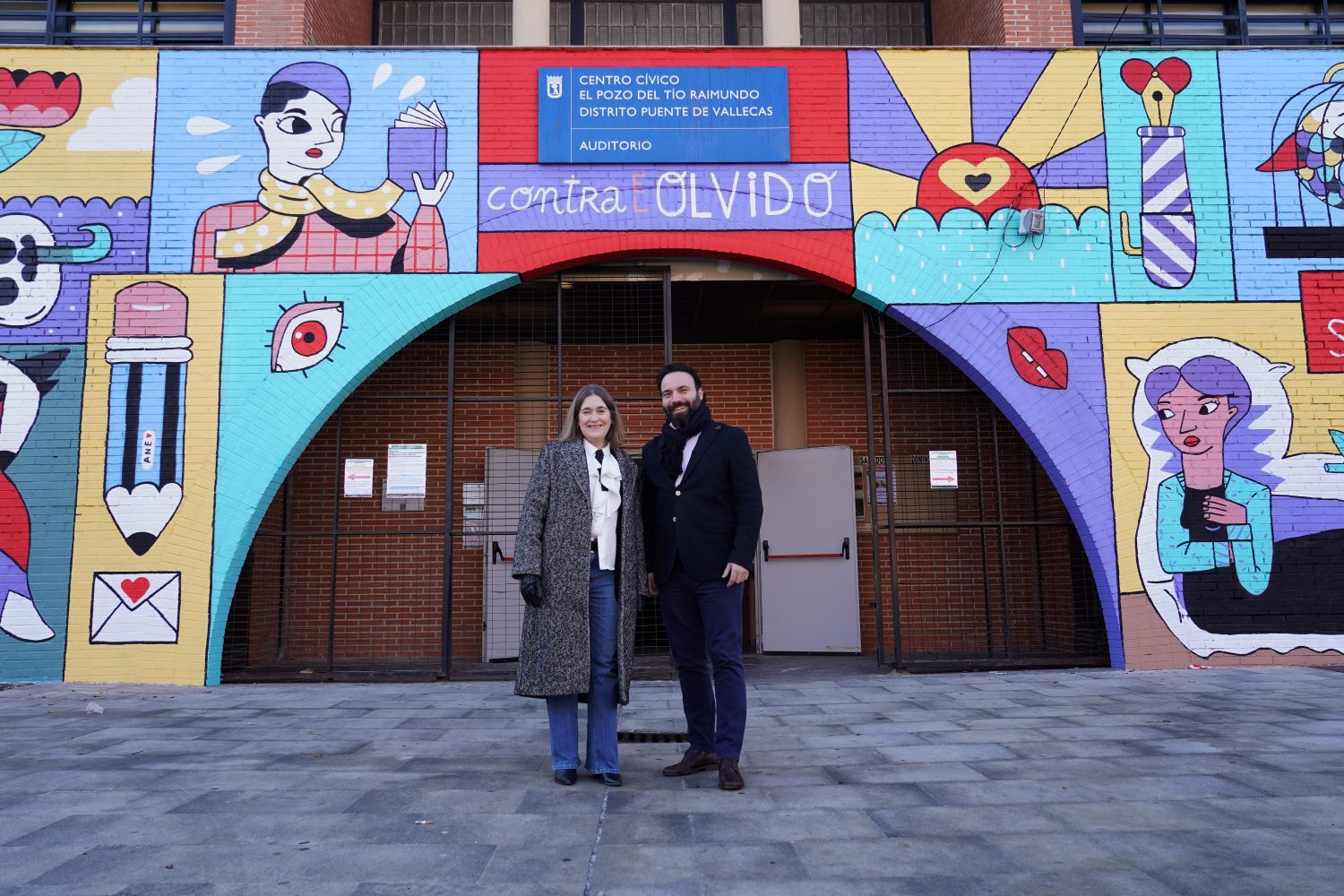 Por su parte, el mural de la Biblioteca Pública Pozo del Tío Raimundo ya está finalizado. La artista Amaya Arrazola, junto a vecinos del distrito de Puente de Vallecas, ha homenajeado a Las Sinsombrero en la obra Contra el olvido.