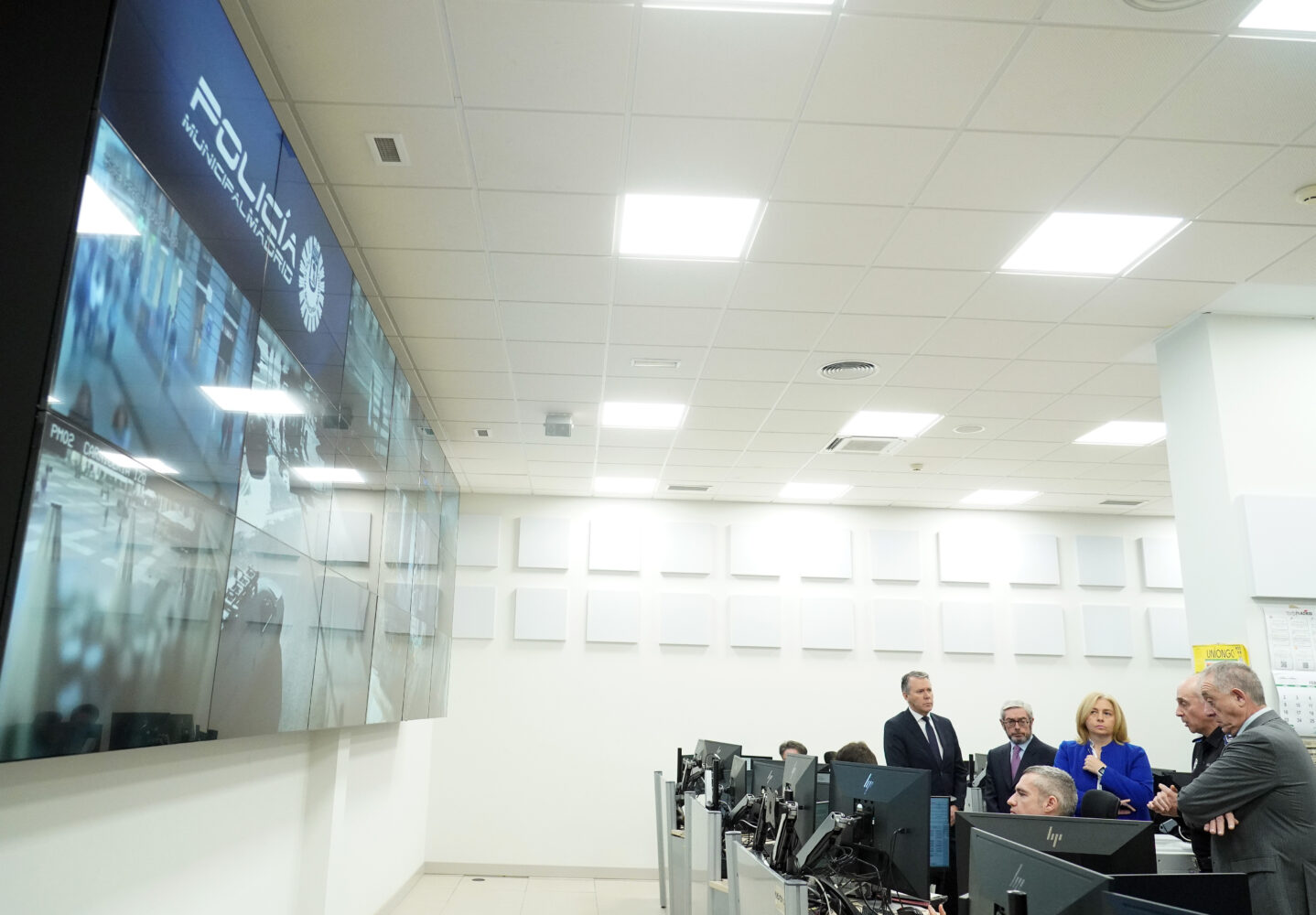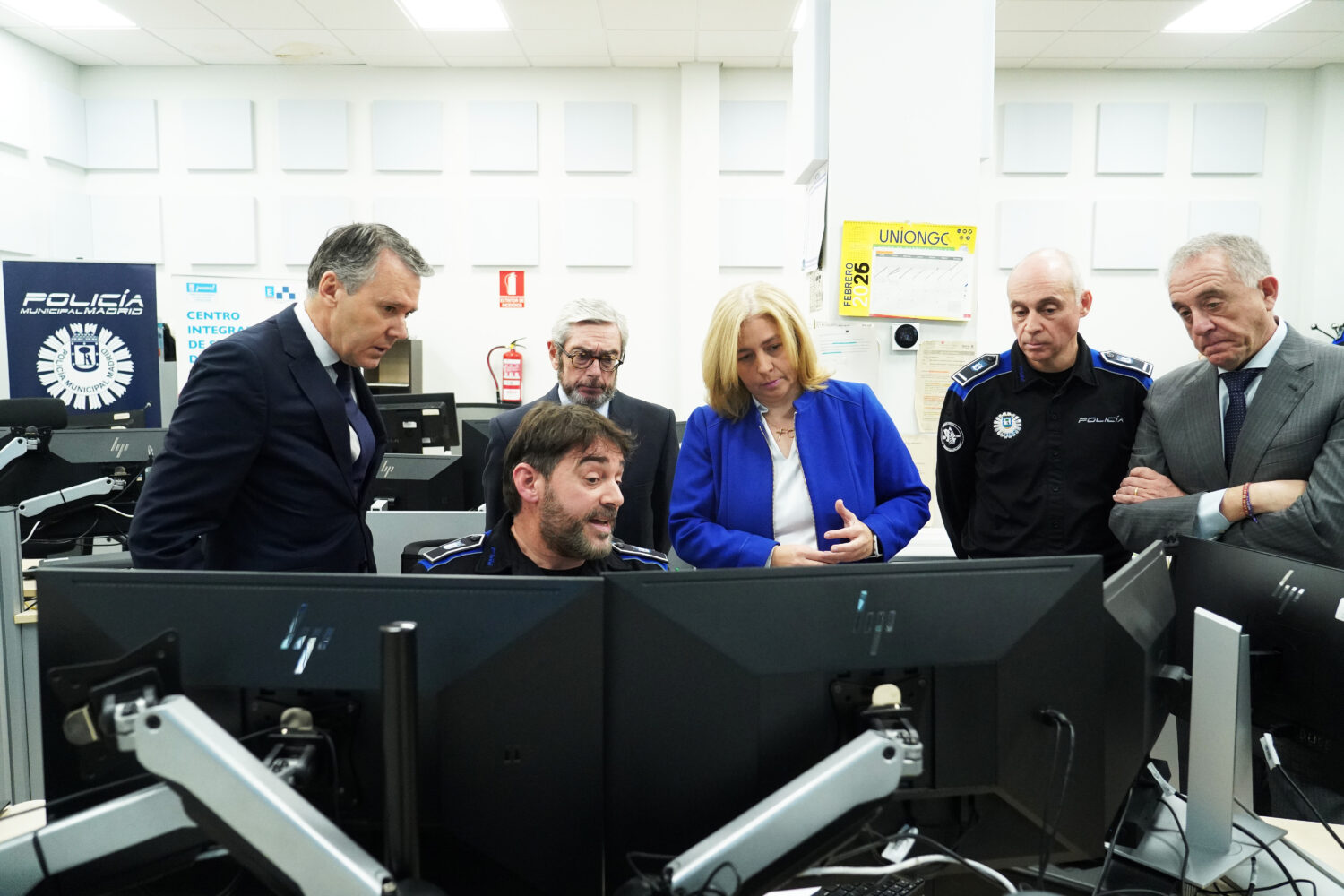 Sanz, durante su visita al CISEVI, desde el que ha hecho balance de los sistemas de videovigilancia en la capital