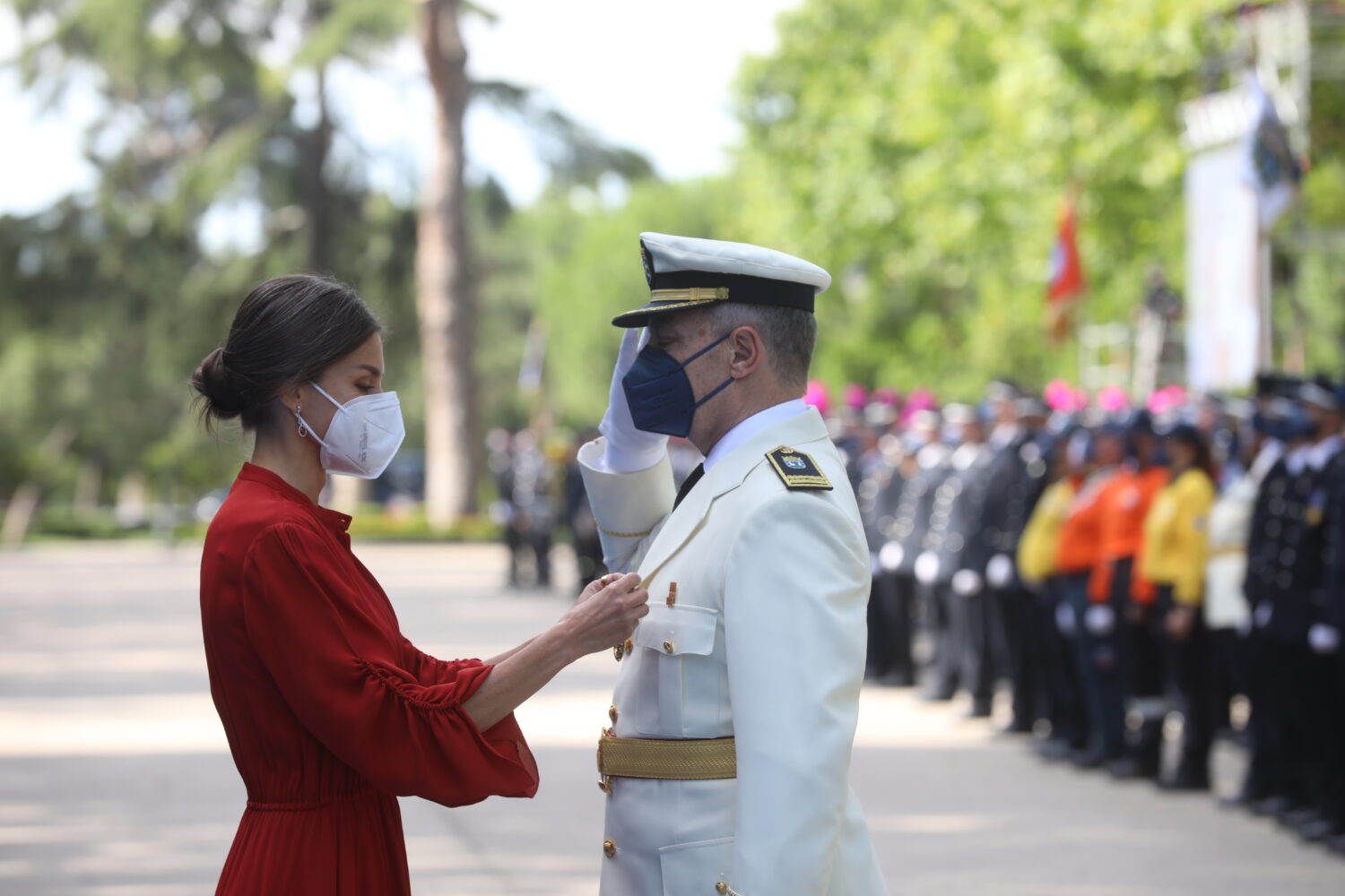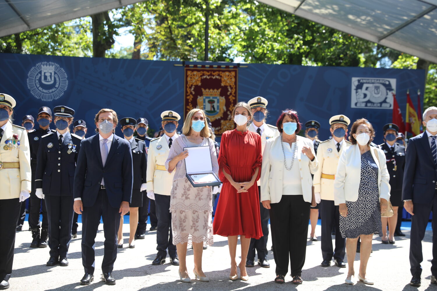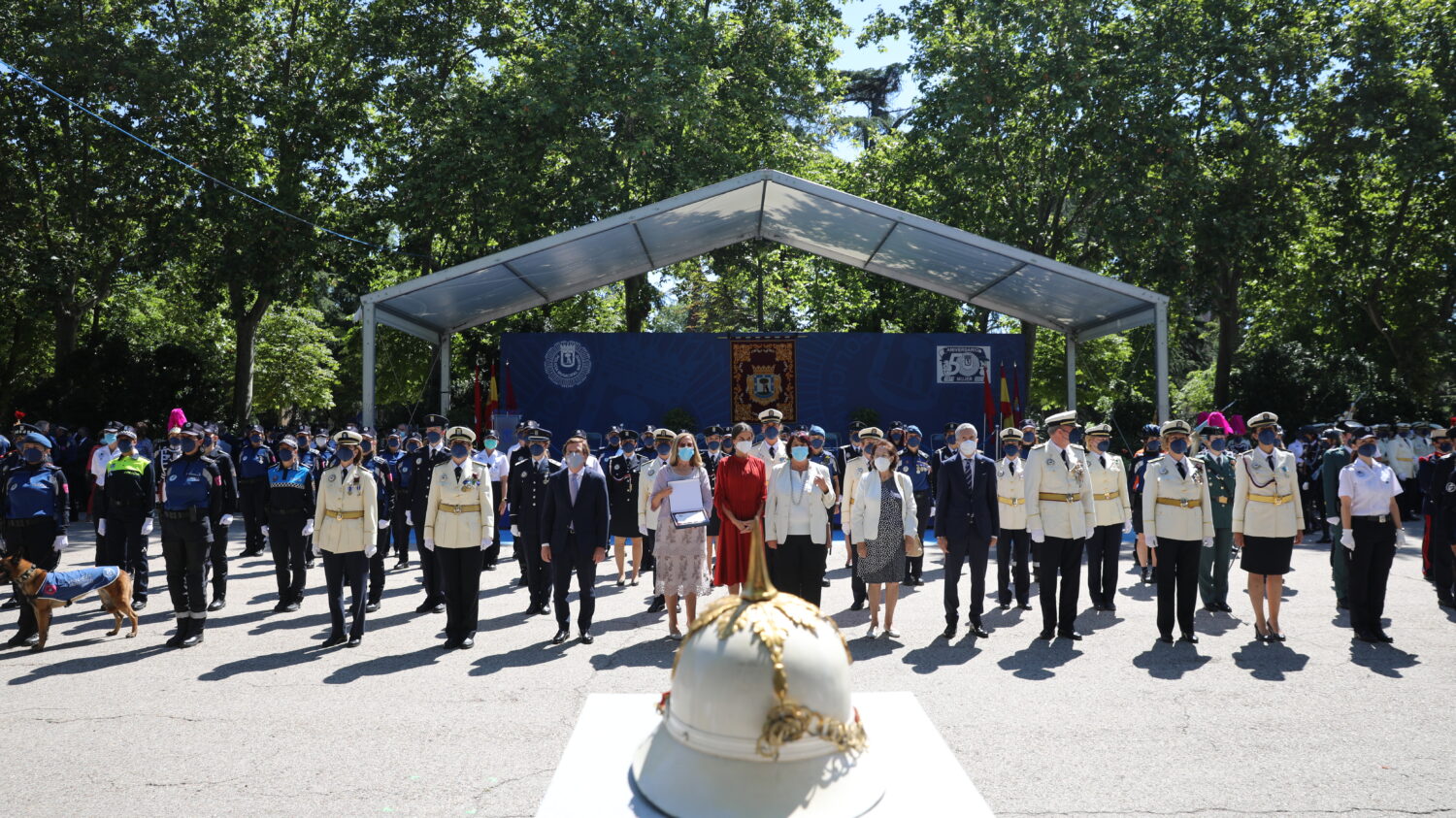 La Policía Municipal de Madrid ha celebrado hoy la festividad de su patrón, San Juan Bautista, en un acto solemne celebrado en el parque de El Retiro presidido por S. M. la reina Letizia y protagonizado por las mujeres, en conmemoración de los 50 años de su incorporación al Cuerpo, en 1971.