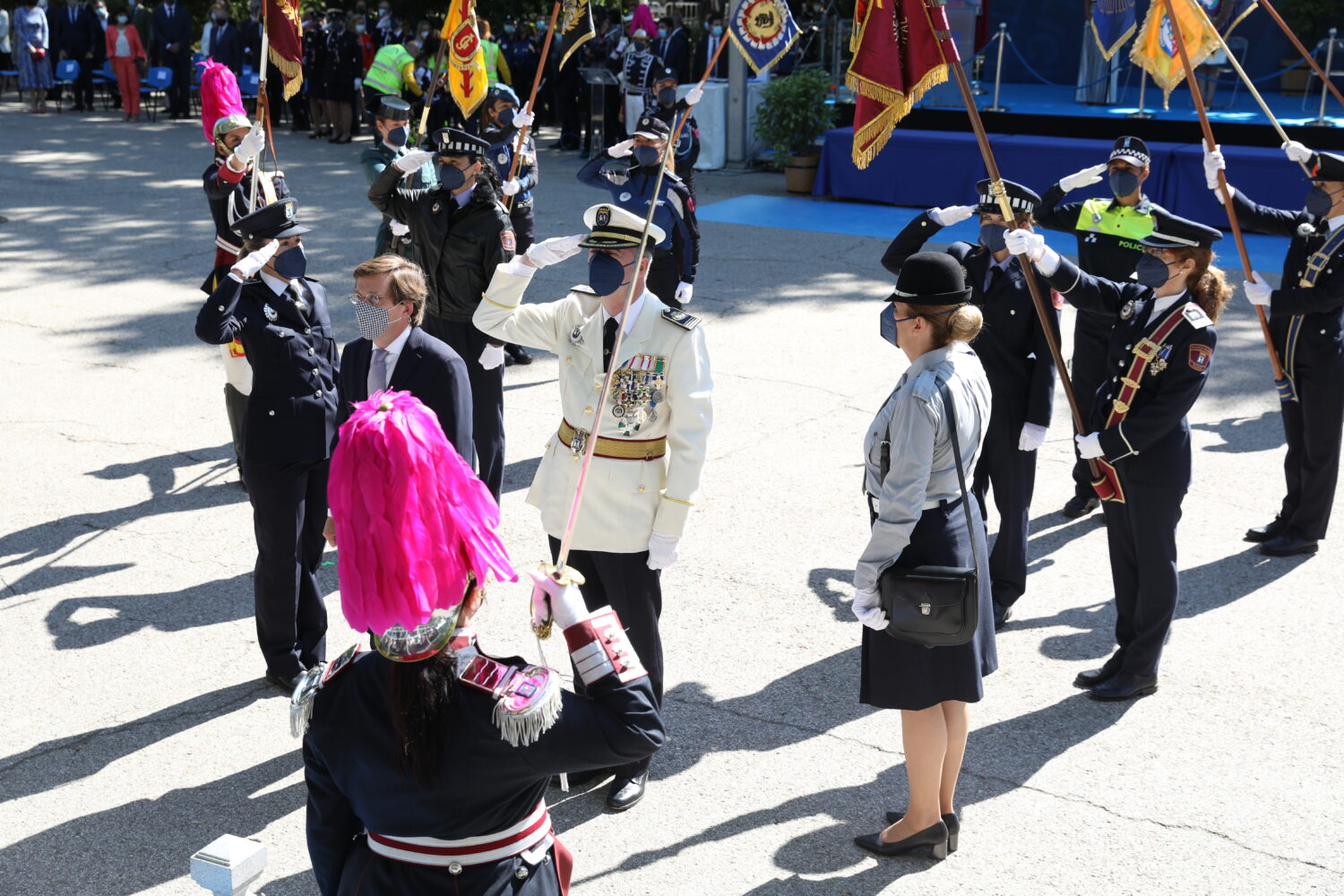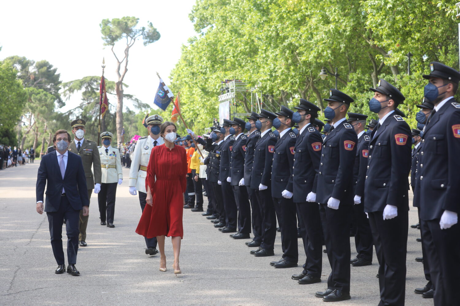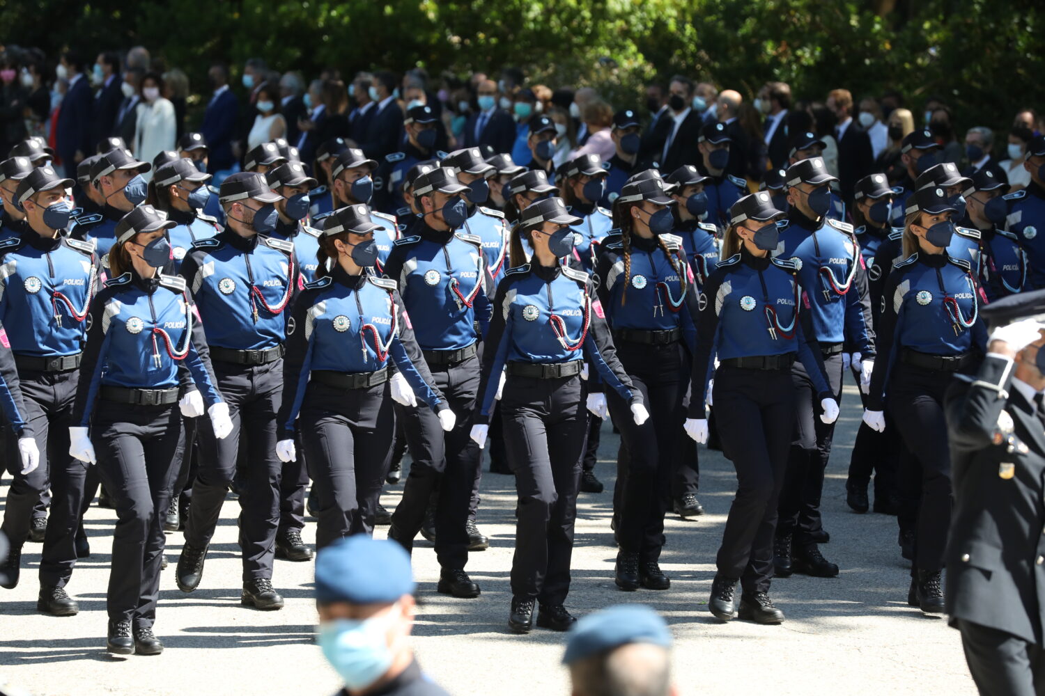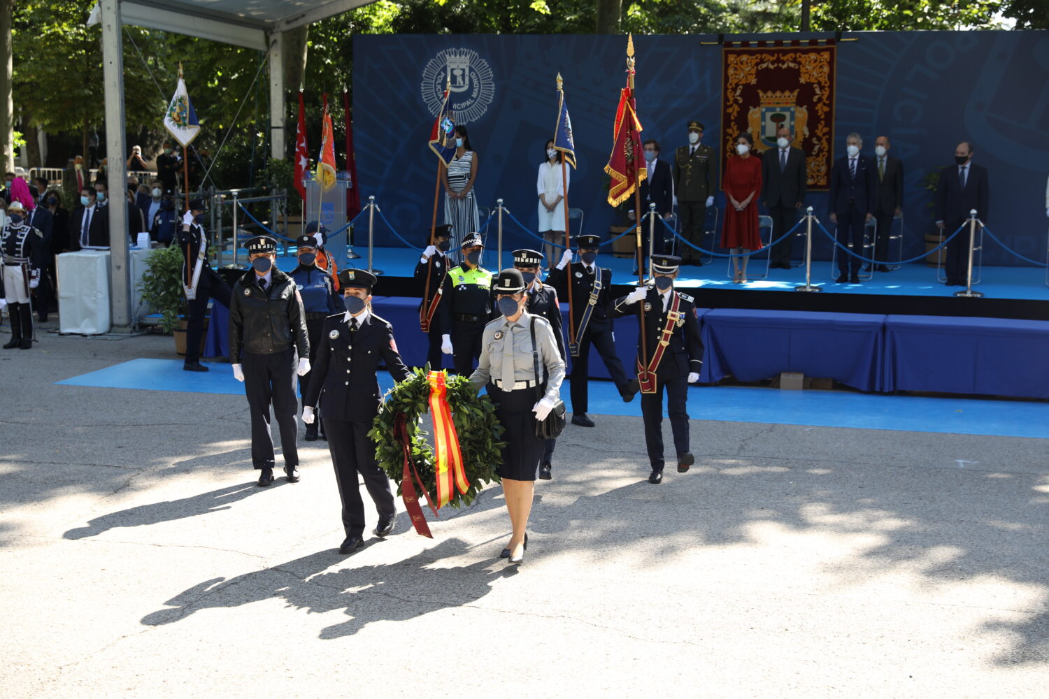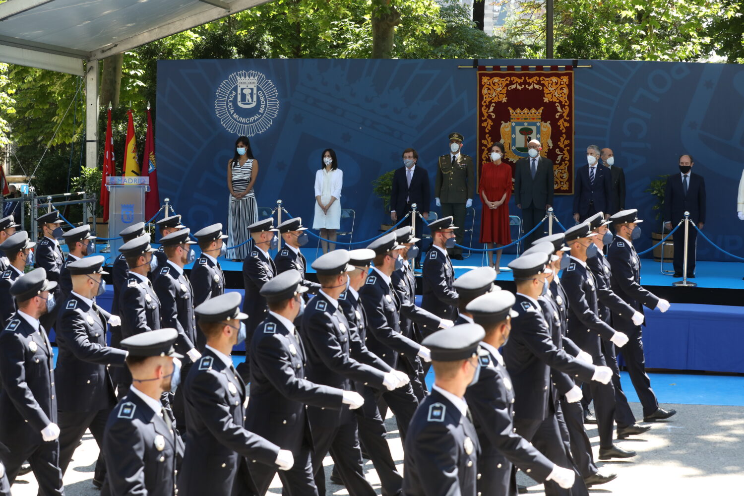 El acto ha contado con todas las unidades de la Policía Municipal junto a representantes de otros cuerpos y fuerzas de seguridad y el desfile final, presidido por la reina, ha tenido una representación mayoritaria de mujeres, especialmente policías municipales de Madrid.