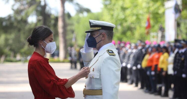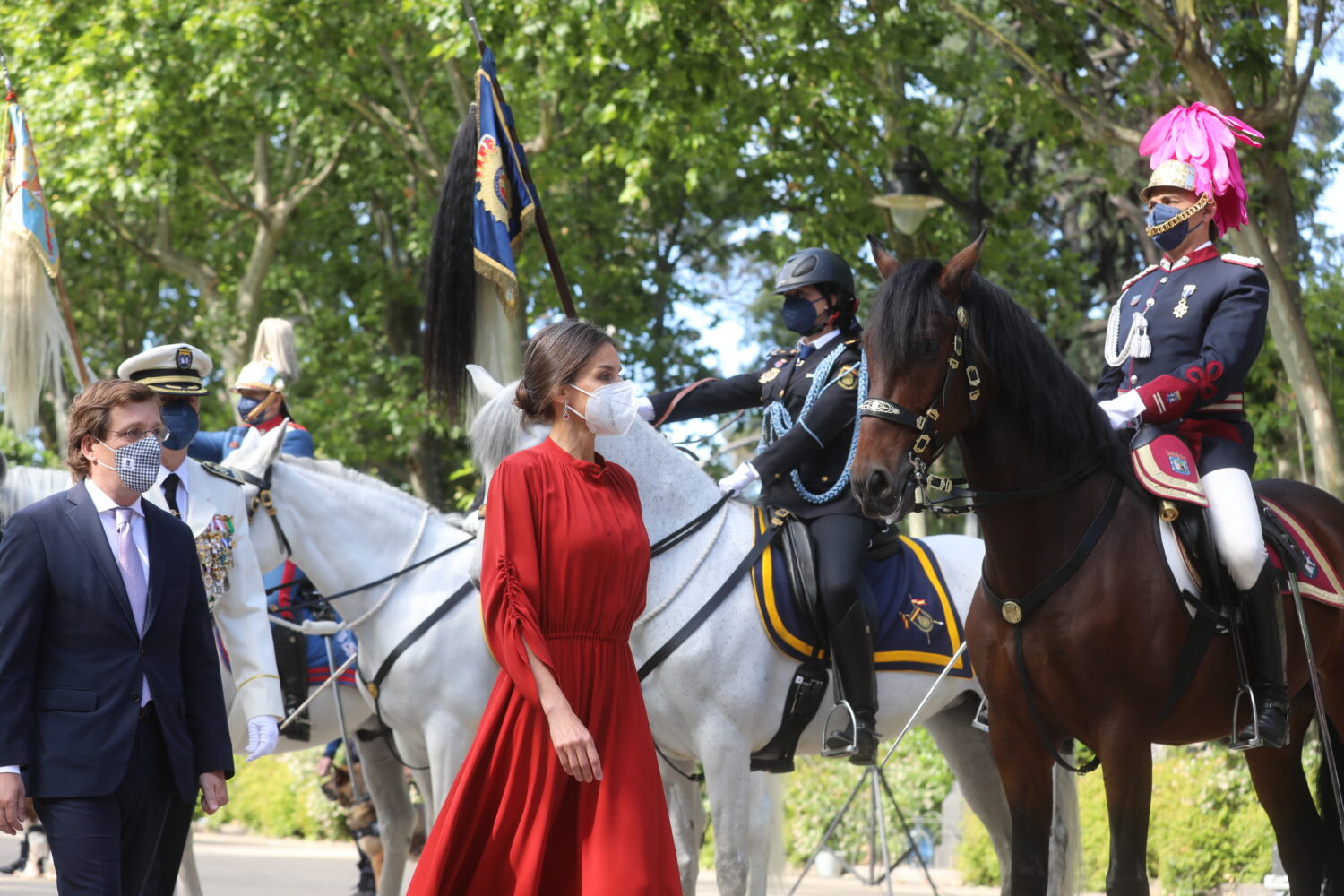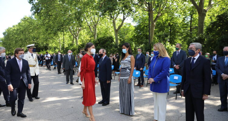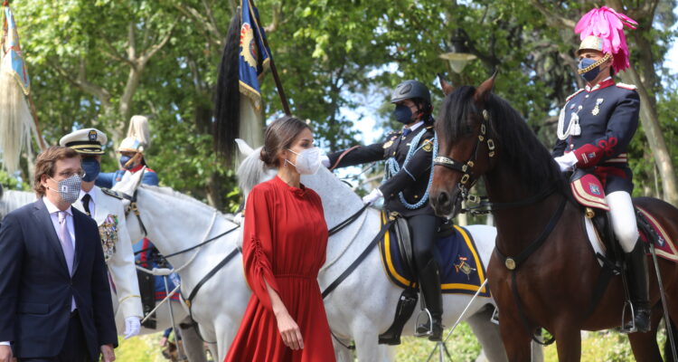 El alcalde de Madrid, José Luis Martínez-Almeida, y el comisario general de la Policía Municipal, Teodoro Pérez, han recibido a la reina. En el acto también han participado el ministro del Interior, Fernando Grande-Marlaska; la delegada del Gobierno, Mercedes González; el presidente del TSJM, Celso Rodríguez Padrón; la fiscal superior de la Comunidad de Madrid, Almudena Lastra; el presidente de la Audiencia Provincial de Madrid, Juan Pablo González; la jueza decana de Madrid, Mª Jesús del Barco; la vicealcaldesa de la ciudad, Begoña Villacís; la delegada de Seguridad y Emergencias y portavoz municipal, Inmaculada Sanz; los portavoces de los grupos municipales y concejales del Ayuntamiento y el director general del Cuerpo, Pablo Enrique Rodríguez, entre otras autoridades.