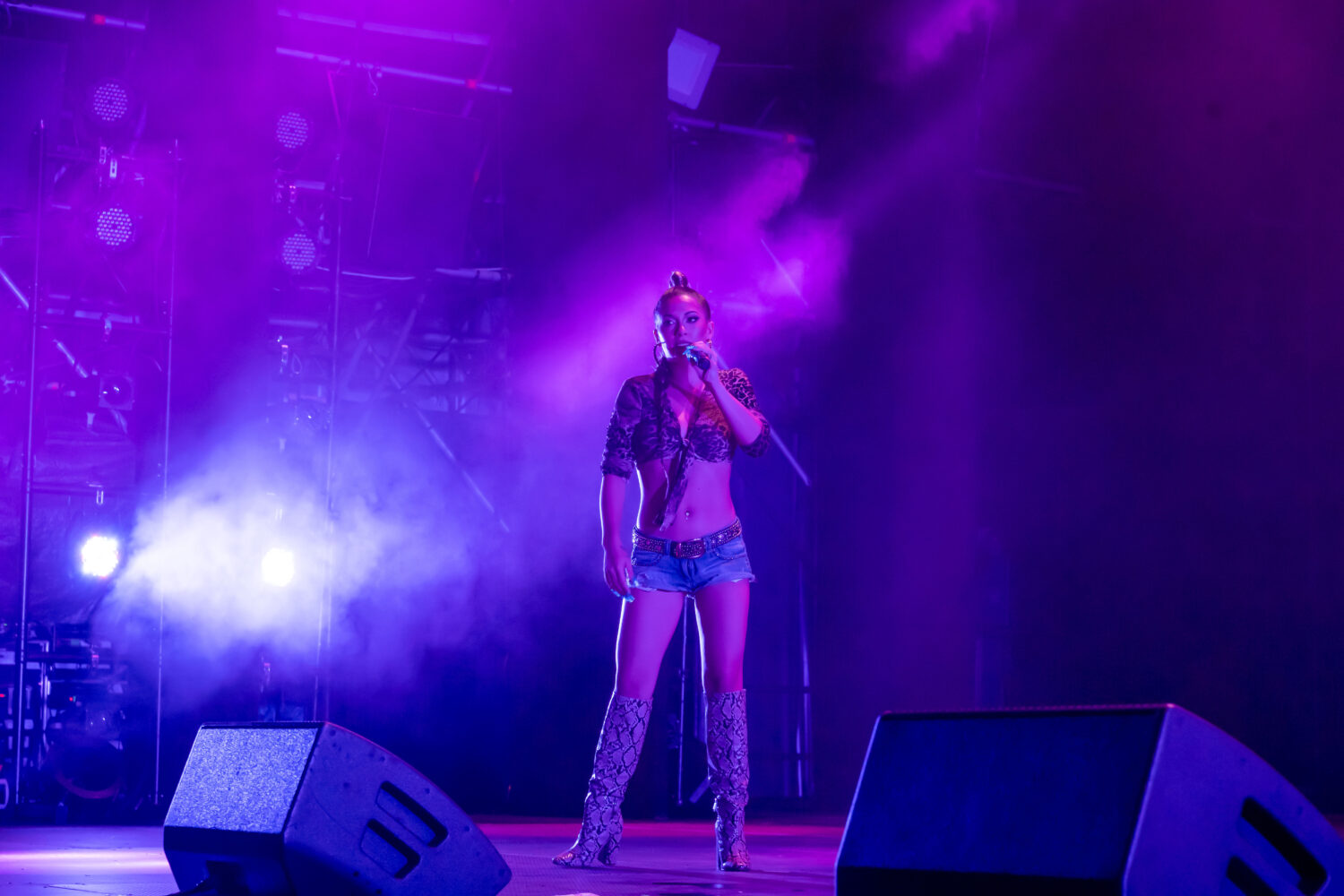 Sonidos más refrescantes y pop tropical se escucharon en las letras de Fresquito y Mango, el dúo zaragozano que ofreció una muestra de su atrevida apuesta musical con influencias del trap, el lo-fi o el reggaetón y referencias a artistas como Estopa, Los Punsetes o Locoplaya. El grupo, que define su música como “la fruta más fresca de España”, ha logrado posicionarse como referentes del denominado nuevo pop y llevar al top ten éxitos como el remix de su tema Mándame un audio, en el que colaboran con la cantante Aitana y que se ha convertido en un fenómeno viral en Tik Tok. A ritmo de estribillos pegadizos y letras que surgen de las preocupaciones cotidianas, Fresquito y Mango mantuvieron encendido el ambiente con canciones como Tormenta de Verano, Pronto, Ya no volverán o la citada Mándame un audio.