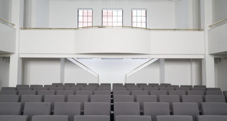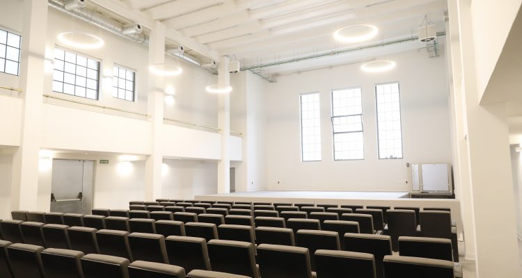 El edificio principal consta de un cuerpo central que alberga el vestíbulo, desde donde se articulan dos volúmenes que se corresponden con la Biblioteca David Gistau y un salón de actos. El proyecto de reforma ha supuesto la remodelación del inmueble y su adaptación a la normativa vigente en materia de accesibilidad. En este sentido, se ha instalado un ascensor que comunica todas las plantas y una plataforma en la zona del escenario del salón de actos. Asimismo, se han adecuado las instalaciones y se han renovado todos los acabados.