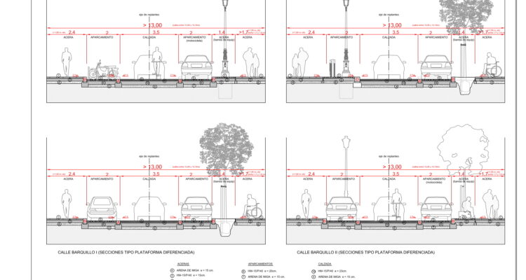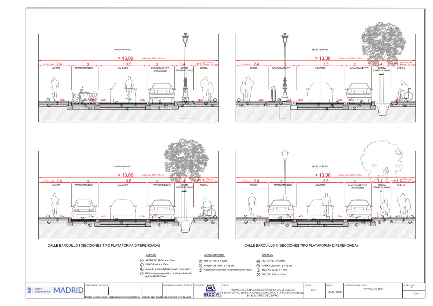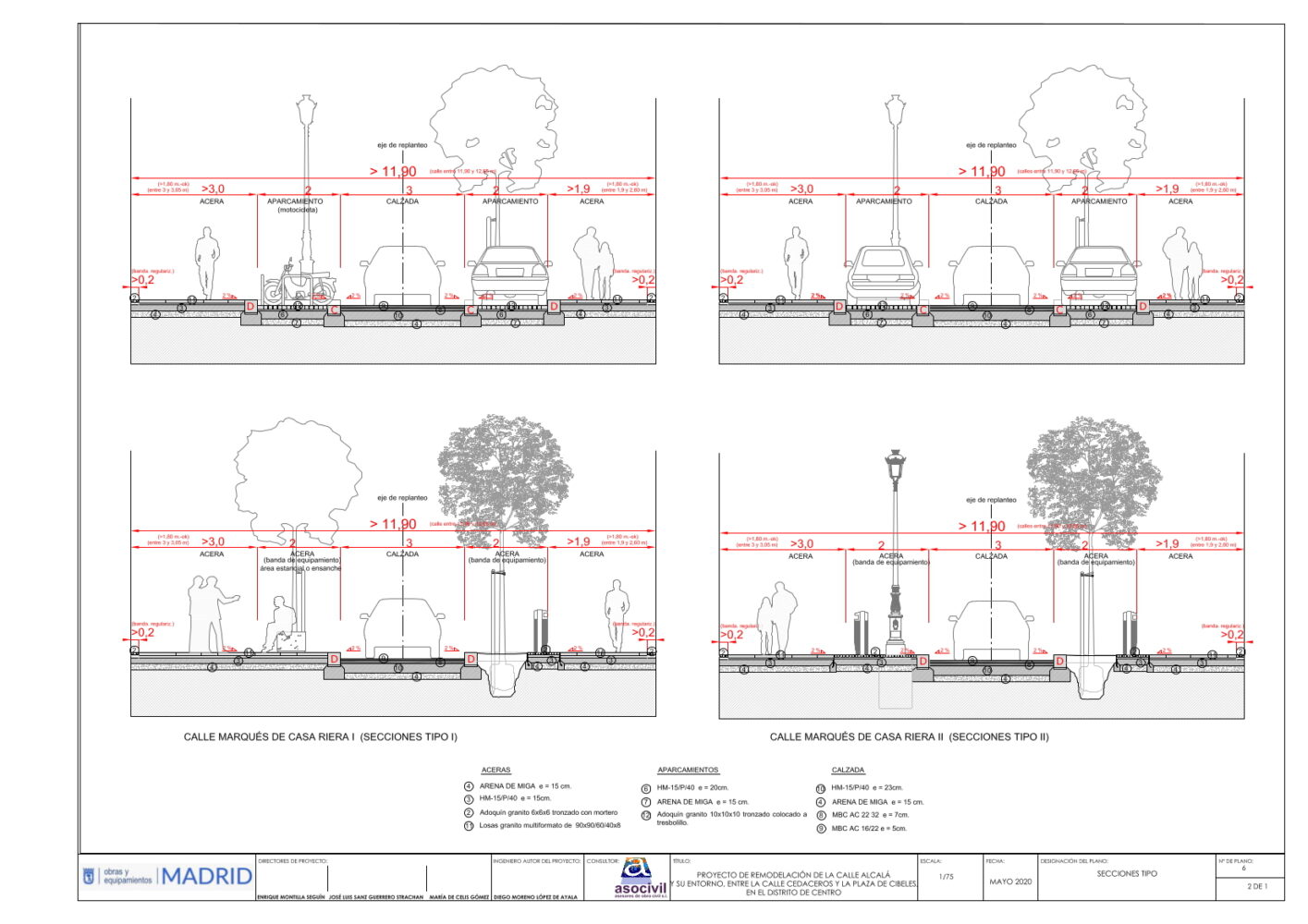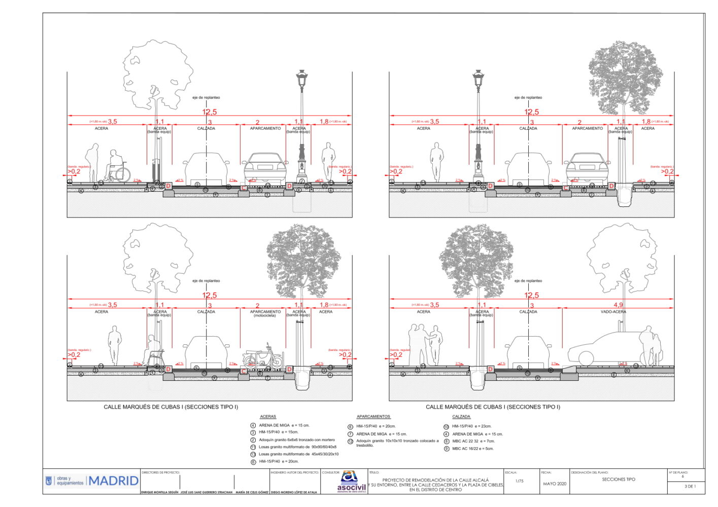 Imágenes correspondientes a las secciones del proyecto trazado para las calles Marqués de Cubas, Marqués de Casa Riera y Barquillo