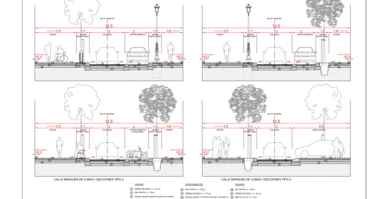 El proyecto abarca diferentes intervenciones, entre las que destaca la renovación total del pavimento, adaptándolo a los criterios utilizados en el entorno de Canalejas. Para ello, se utilizarán grandes piezas de granito multiformato con bandas drenantes en las que se ubicará el arbolado. Para cumplir con la normativa vigente en materia de accesibilidad, en los cruces y pasos de peatones se dispondrá un pavimento podotáctil.