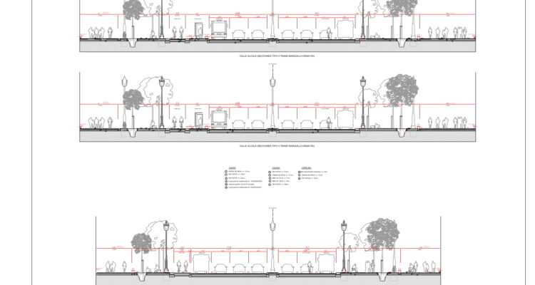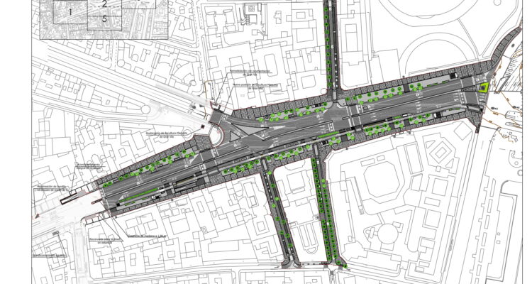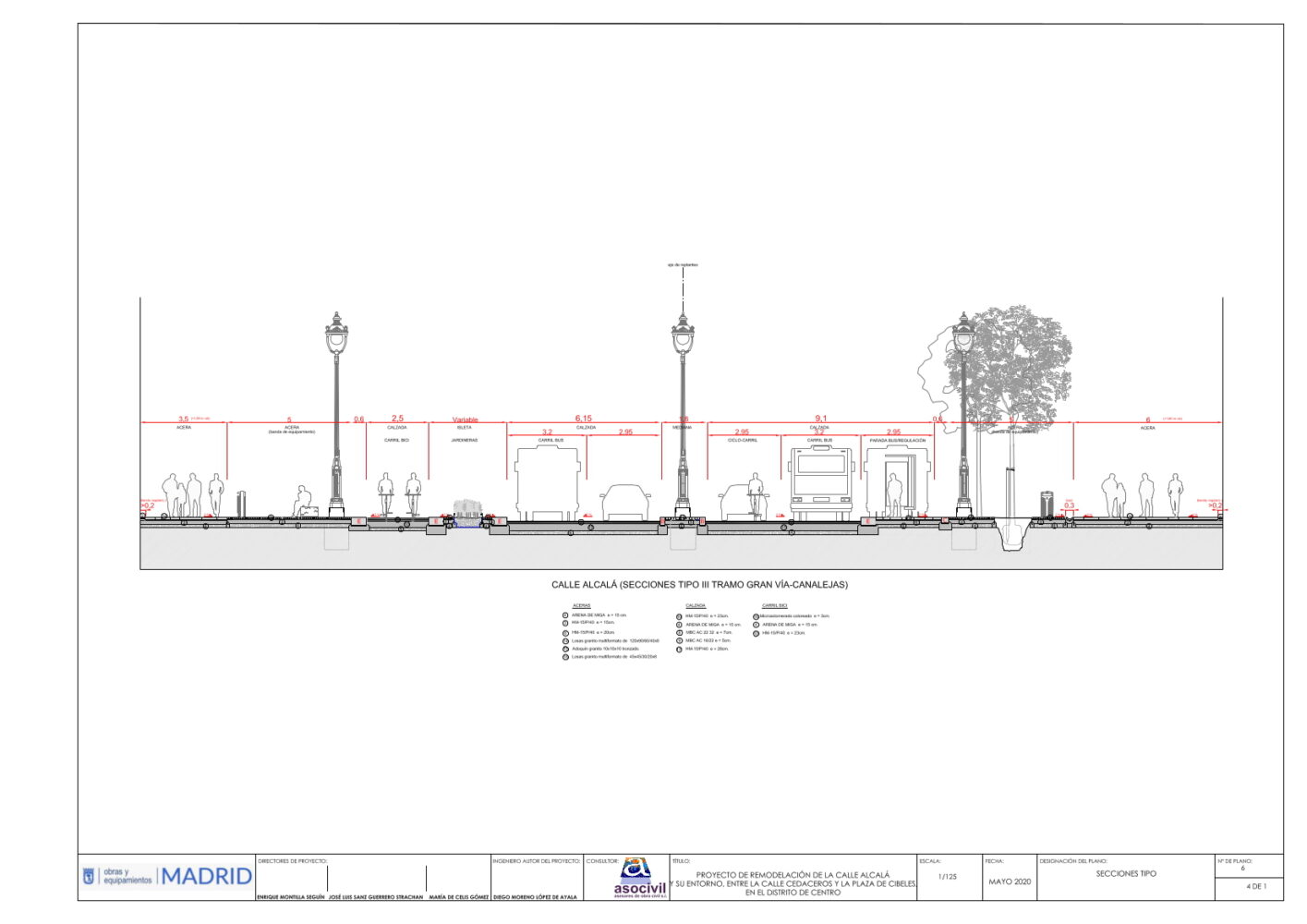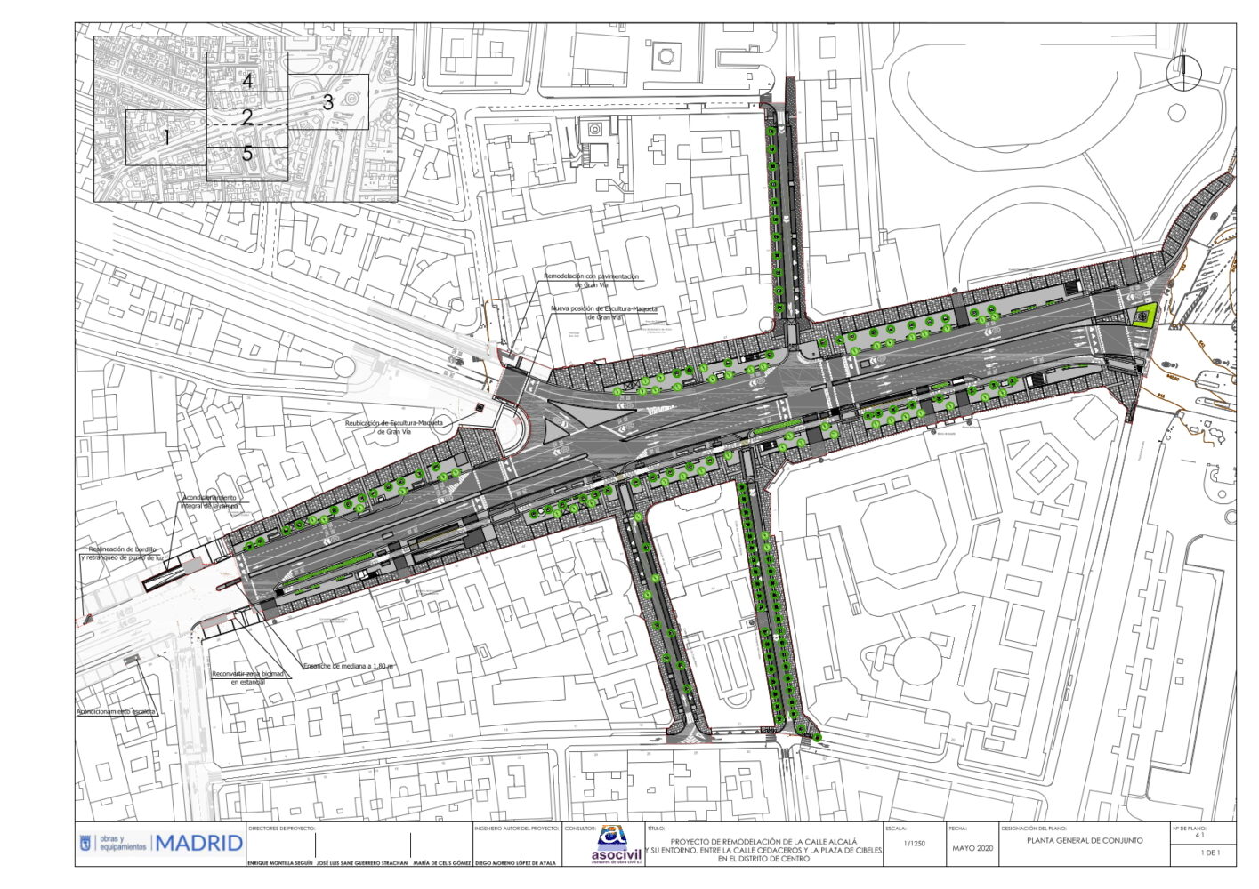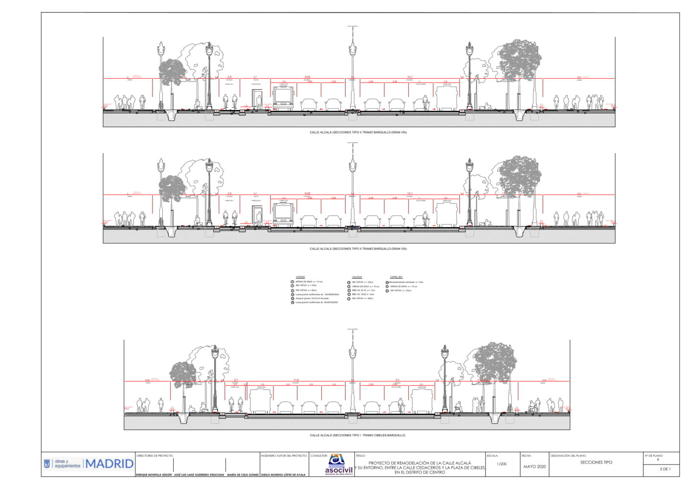 Imágenes correspondientes a la planta general de conjunto de la zona objeto de remodelación y de las secciones de los tramos comprendidos entre Gran Vía y Canalejas y Barquillo y Gran Vía
