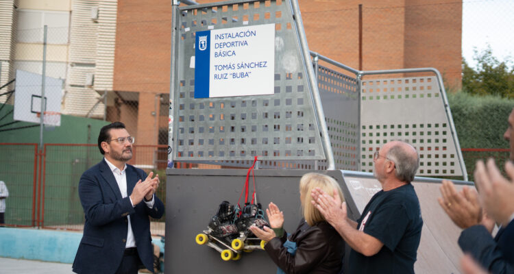 Esta tarde, el concejal de Villa de Vallecas, Carlos González Pereira, ha descubierto una placa en honor al patinador Tomás Sánchez Ruiz, ‘Buba’ en la instalación deportiva básica con pistas de skate a la que dará nombre, situada en la calle Real de Arganda.