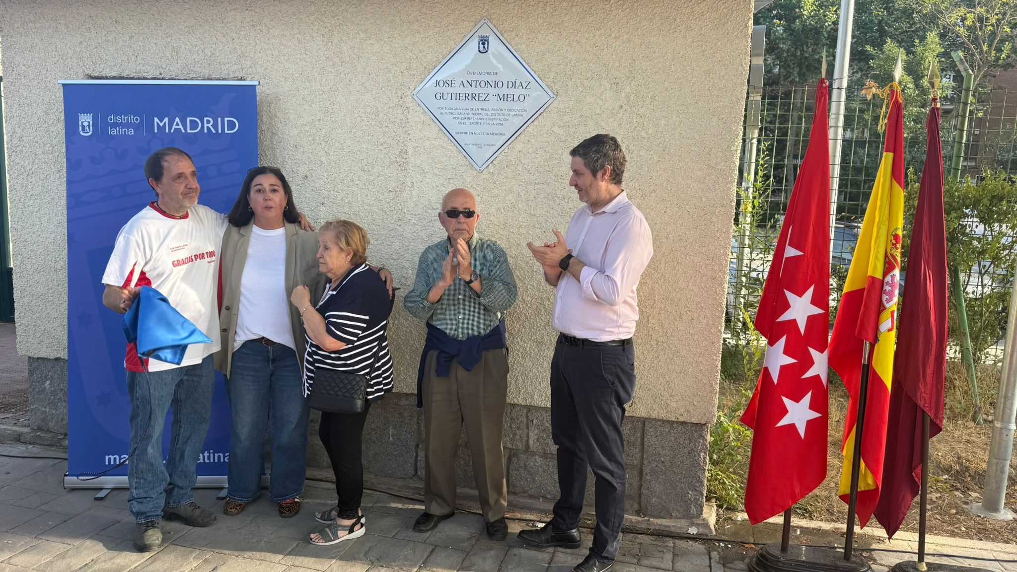 El concejal de Latina, Alberto González, ha descubierto esta tarde una placa conmemorativa en honor al promotor deportivo José Antonio Díaz Gutiérrez, ‘Melo’, fallecido en 2023 a los 55 años, en las pistas del Centro Deportivo Municipal Aluche, en el que fue responsable de la escuela municipal de fútbol sala. González ha destacado que este homenaje, acordado en el Pleno del distrito de julio de 2024, celebra “toda una vida de entrega, pasión y dedicación al fútbol sala municipal del distrito de Latina”.
