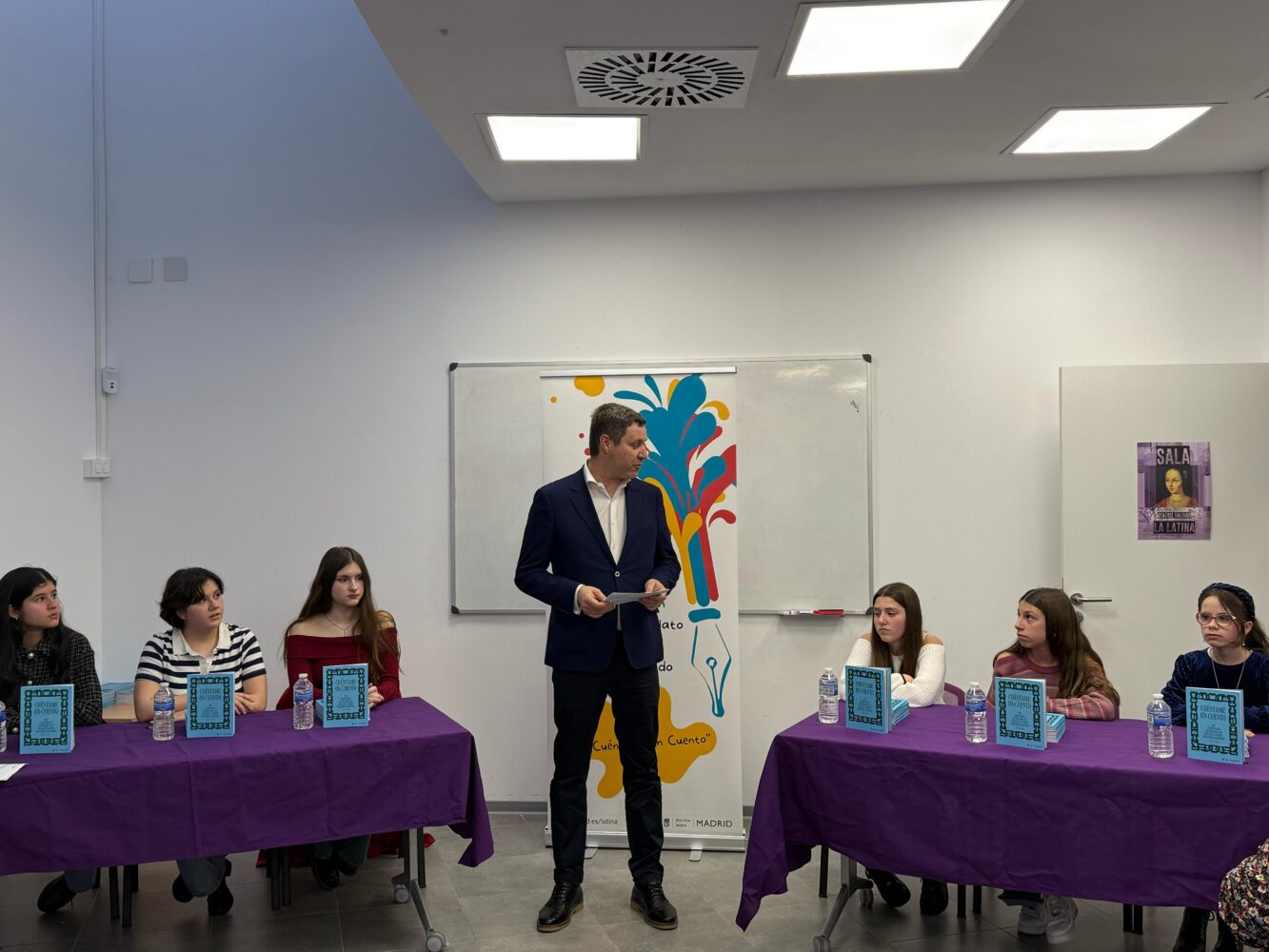 El concejal de Latina, Alberto González Díaz, ha asistido, en el Espacio de Igualdad María de Maeztu, a la presentación del libro Cuéntame un cuento, que reúne los relatos premiados y finalistas del XII Certamen Literario de Relato Corto Beatriz Galindo, organizado por la junta municipal.