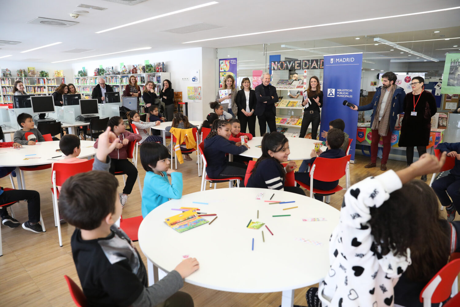 La delegada de Cultura Turismo y Deporte, Andrea Levy, ha visitado hoy la biblioteca municipal Ángel González, en el distrito de Latina, donde ha presentado Bibliocromos, un proyecto destinado a fomentar la lectura entre el público infantil.