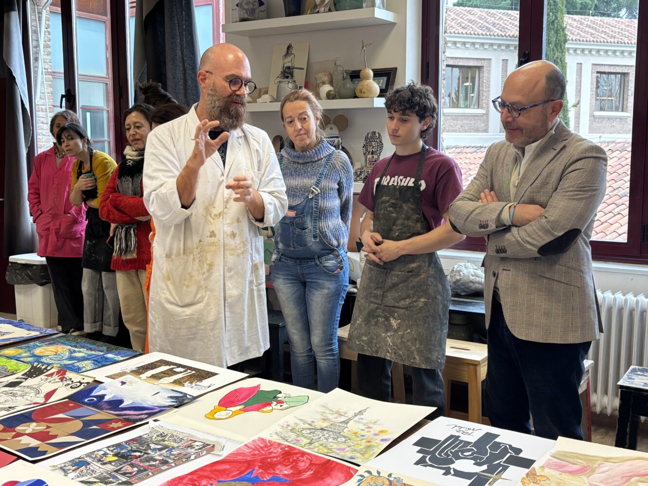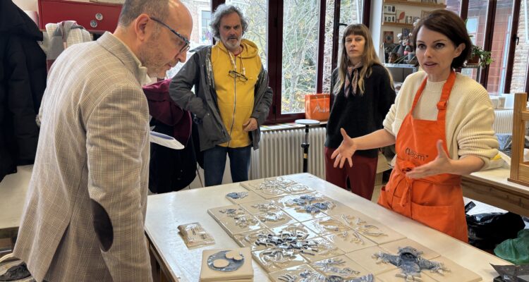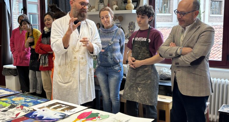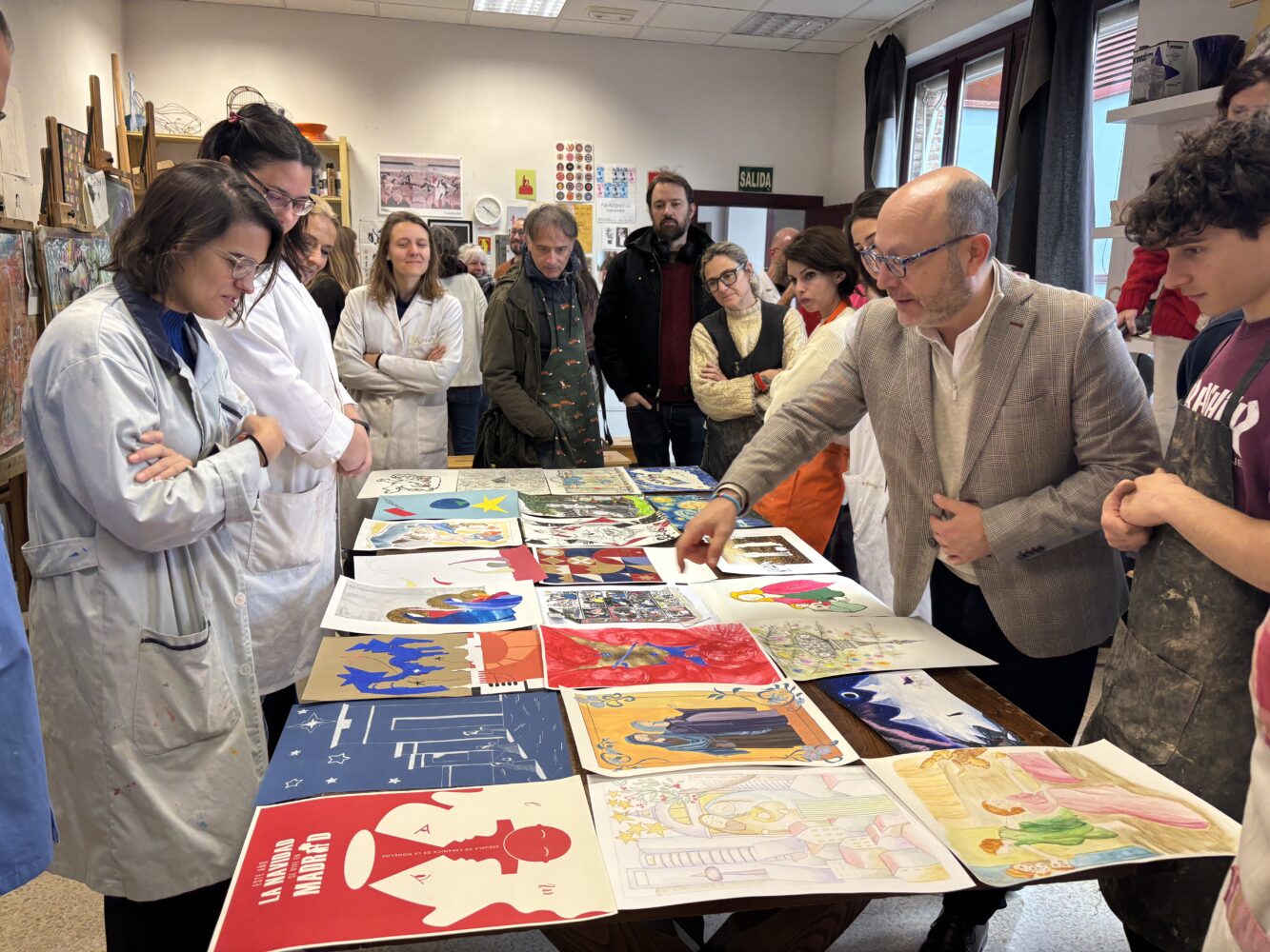 El delegado de Políticas Sociales, Familia e Igualdad, José Fernández, ha visitado hoy la Escuela de Cerámica de la Moncloa, cuyos alumnos han participado, por segundo año consecutivo, en un proyecto educativo extracurricular promovido por el Ayuntamiento de Madrid para impulsar el talento de los artistas locales mediante la realización de diseños originales con motivos navideños. Los autores se han inspirado en obras de artes reconocidas y las han reinterpretado, con total libertad creativa, para representar escenas como la Anunciación, el misterio o la Adoración de los Reyes Magos a través de técnicas como el dibujo de línea, el collage, el gouache, la acuarela o el diseño digital.