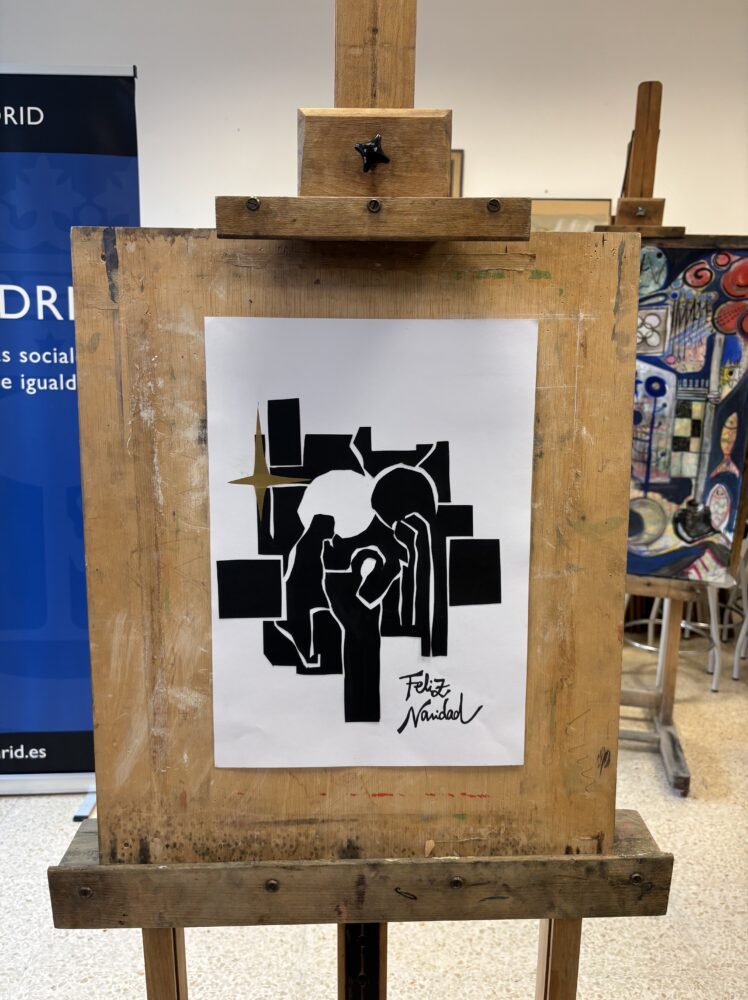 El diseño presentado por Laura Moreta, alumna de primer curso de la asignatura ‘Bases de enseñanzas cerámicas’, ha sido elegido ganador. La artista ha homenajeado a Eduardo Chillida en el centenario de su nacimiento inspirándose en sus grabados, en el contraste entre blanco y negro, en el ritmo de sus composiciones y en la fuerza de los bloques para dar forma mediante un collage a un misterio de Navidad en el que aparecen la Virgen, San José, el Niño y la estrella.