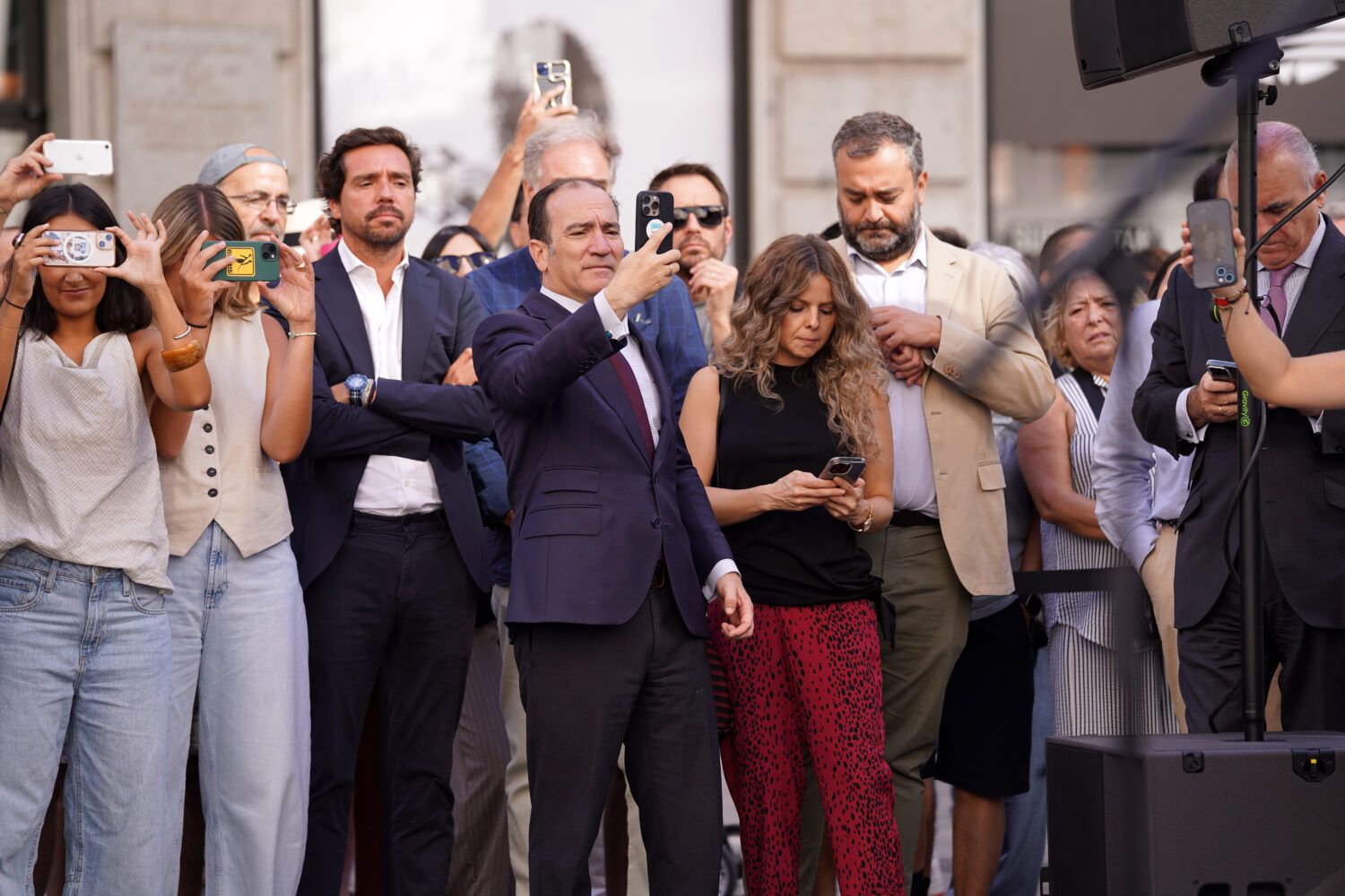 Carabante y Segura durante la actuación de los artistas Paula Mattheus y Hey Kid del espectáculo El Jardín de las Delicias en la Gran Vía