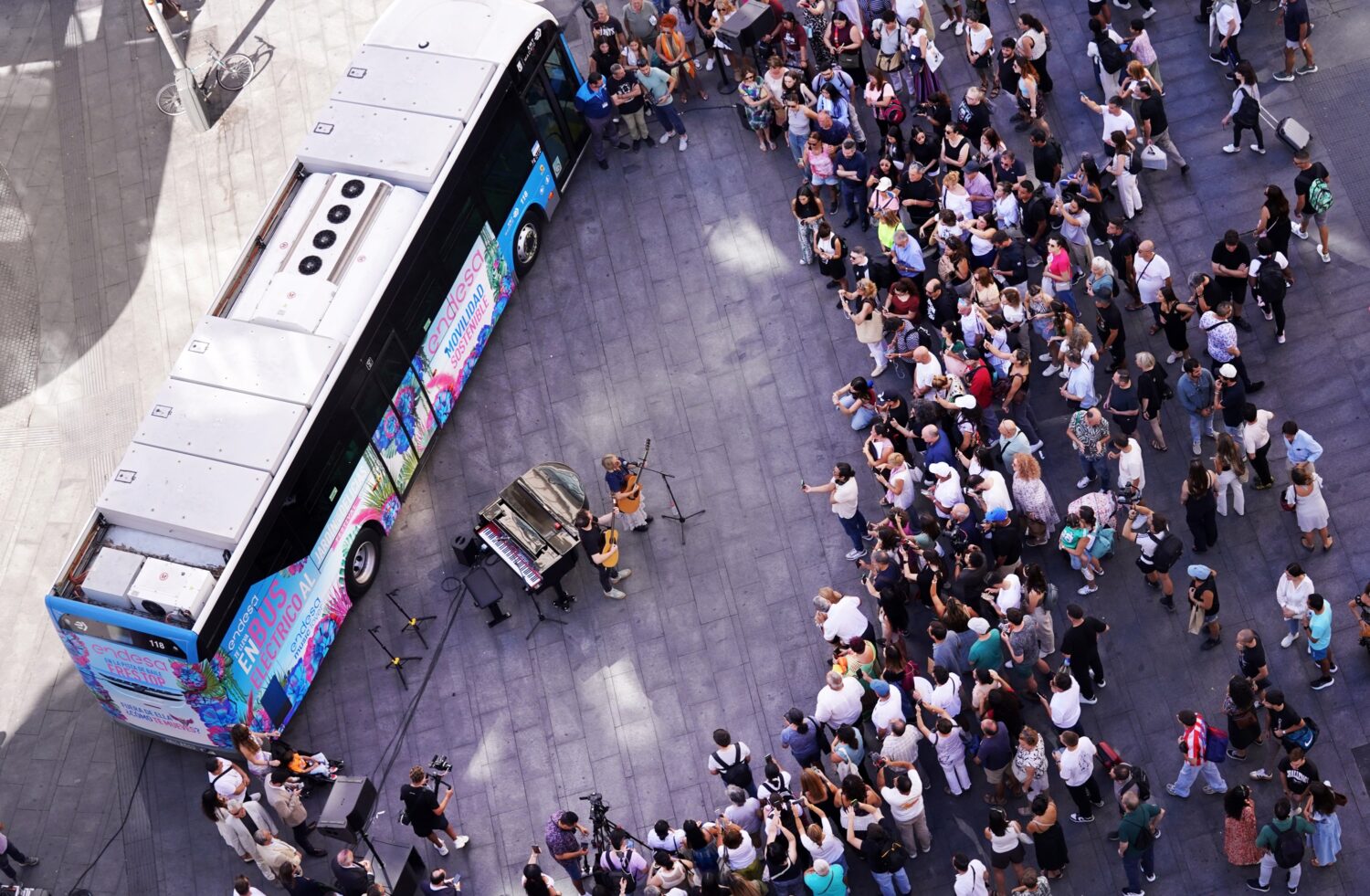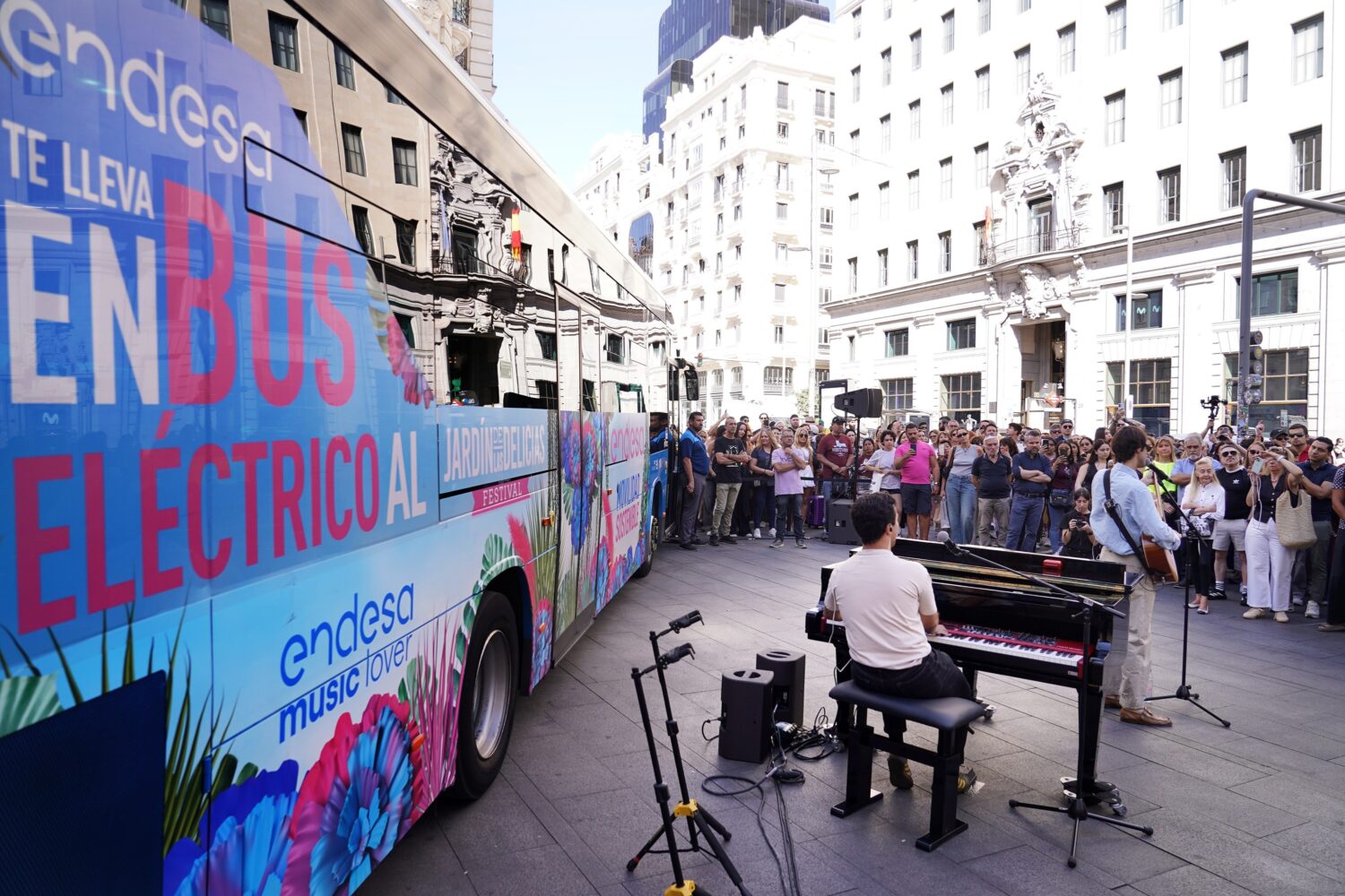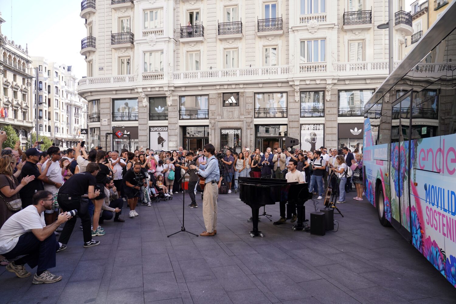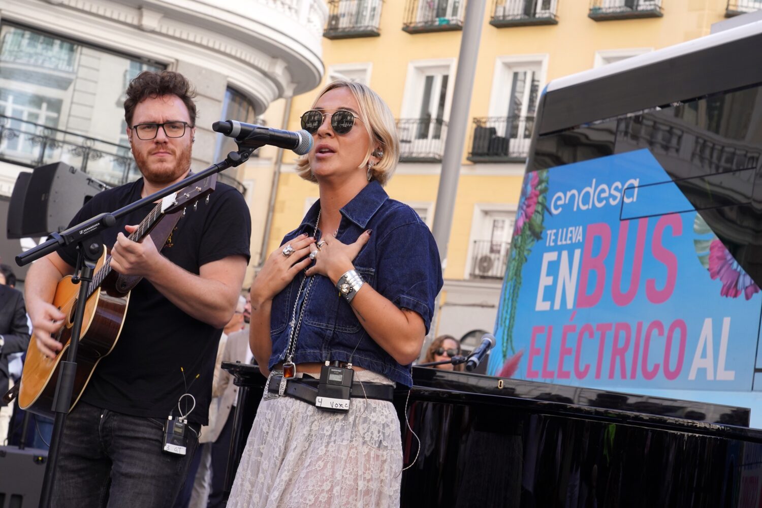 En el marco de la Semana Europea de la Movilidad, los artistas Paula Mattheus y Hey Kid han actuado por sorpresa esta mañana en la Gran Vía madrileña en presencia del delegado de Urbanismo, Medio Ambiente y Movilidad, Borja Carabante, y el concejal del distrito de Centro, Carlos Segura. Los cantantes, que participarán este viernes y sábado en el festival Jardín de las Delicias, han interpretado algunos de sus temas junto a uno de los autobuses eléctricos que cubrirán el Servicio Especial gratuito al evento. Durante aproximadamente media hora, los viandantes han podido disfrutar de esta acción especial, iniciativa conjunta de la Empresa Municipal de Transportes de Madrid (EMT Madrid) y Endesa, que aúna música, cultura, sostenibilidad y movilidad.