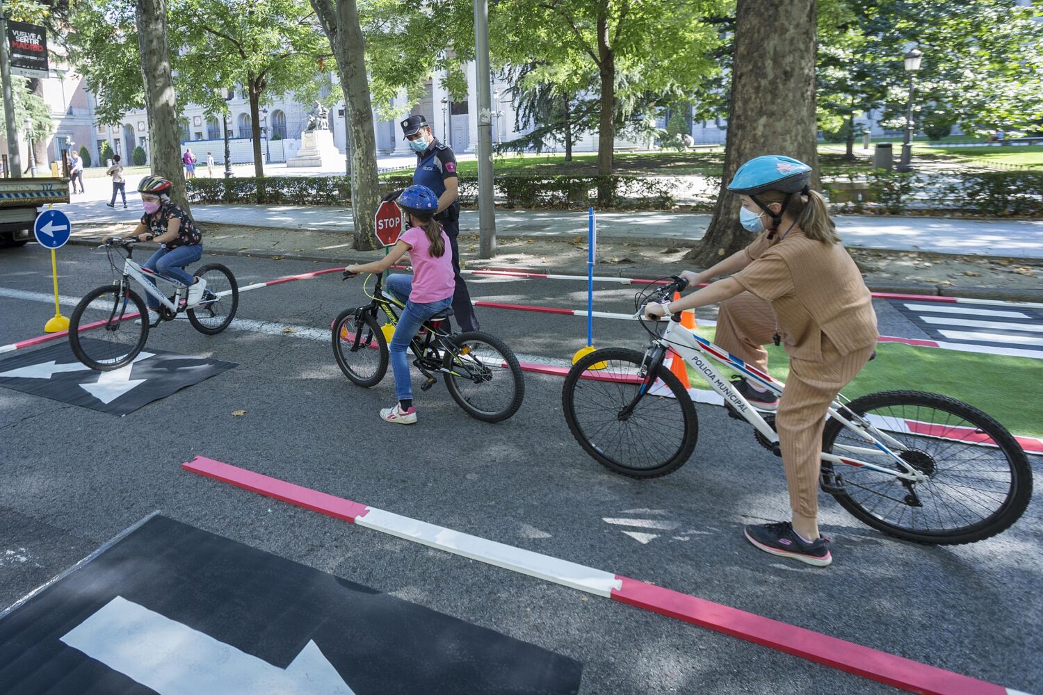 Además, se han habilitado talleres básicos para el ajuste de bicis o actuación en caso de pinchazo, reparación y mantenimiento de patinetes y hasta una inspección técnica de bicicletas, un curso de conducción de patinetes, otro de ciclomotores, una exposición de vehículos de Carsharing. Zity y Free2move y la carpa ‘Un paso hacia el bienestar’ de Madrid Salud. /