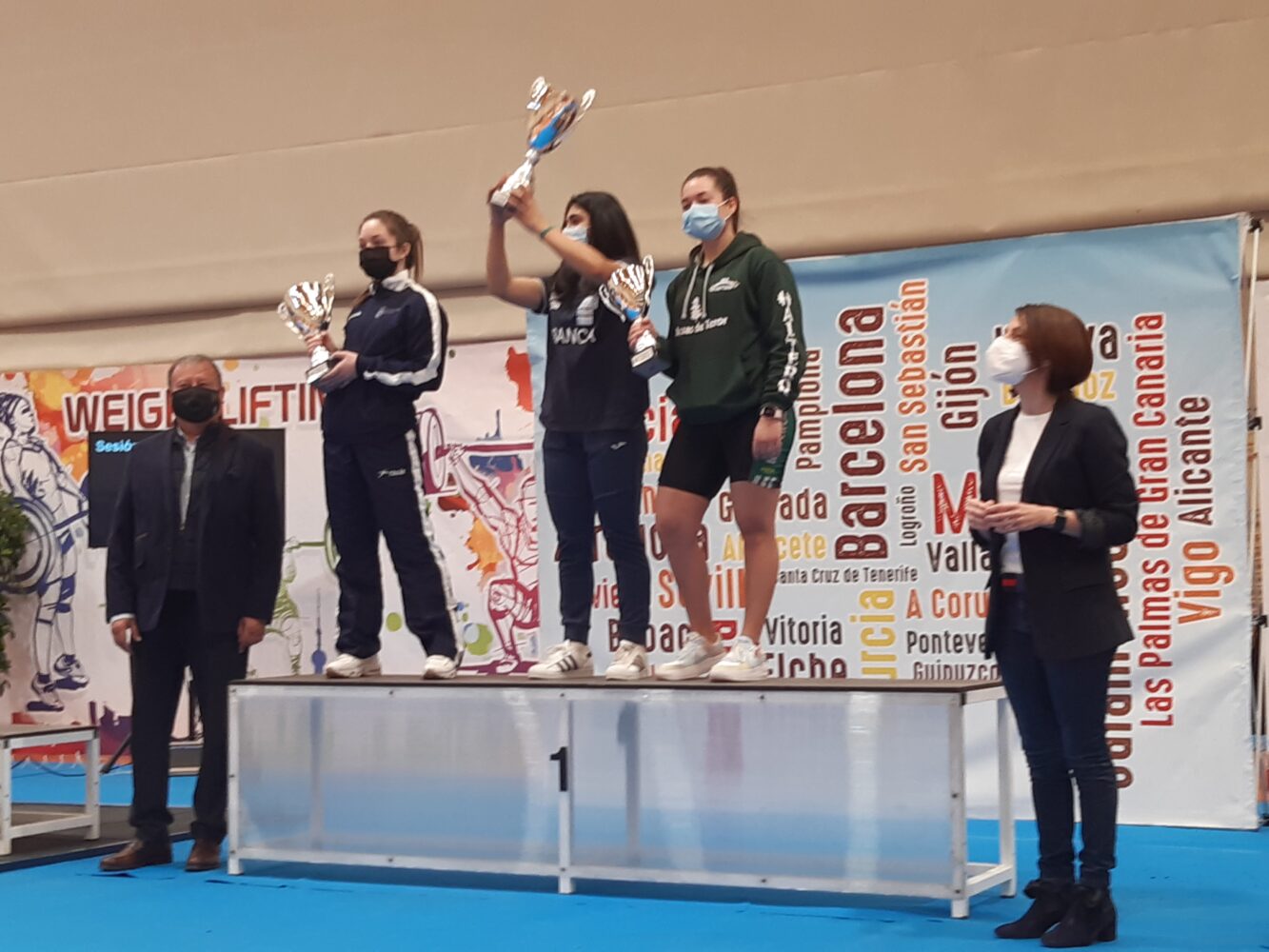 La concejala del distrito de Villa de Vallecas, Concha Chapa, ha asistido a la sesión matinal de la Copa Federación de Clubes de Halterofilia Sub16 y Sub18 que se disputa este sábado en el centro deportivo municipal Cerro Almodóvar organizada por la Federación Española de Halterofilia. Tras finalizar los levantamientos de las deportistas Sub16, la edil ha participado en la ceremonia de entrega de trofeos junto con el presidente de la federación, Constantino Iglesias.