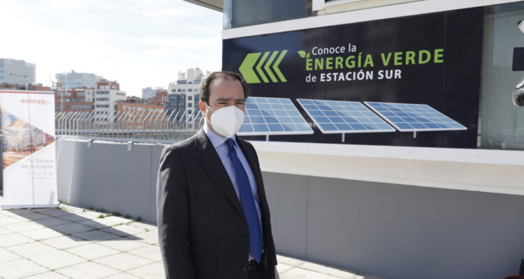 El delegado del Área de Medio Ambiente y Movilidad, Borja Carabante, ha visitado esta mañana la Estación Sur de Autobuses de Madrid, acompañado de varios representantes de la empresa concesionaria, para comprobar el funcionamiento de los 720 paneles fotovoltaicos recientemente instalados.