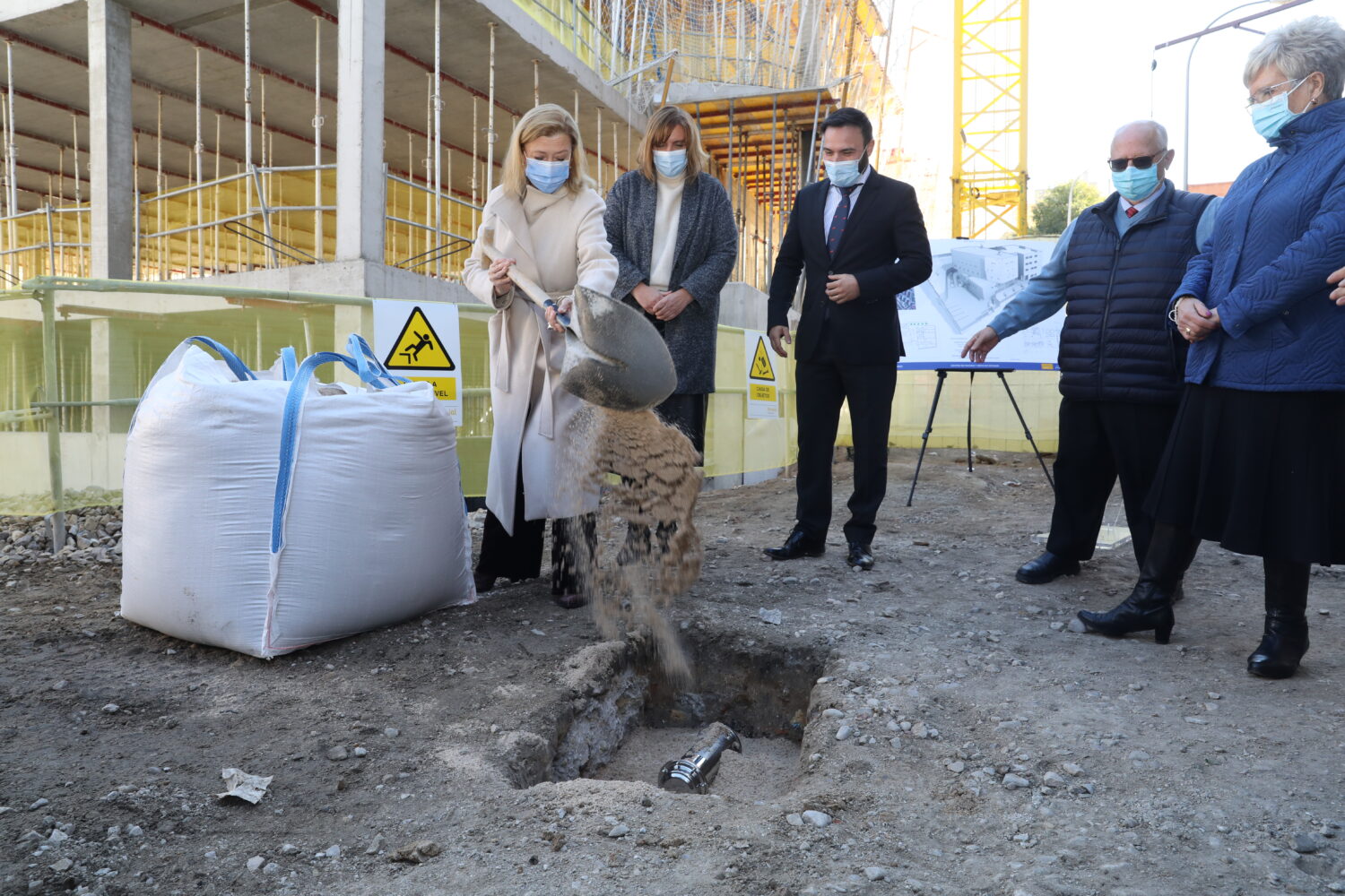 Durante la visita, en la que también ha participado el concejal de Ciudad Lineal, Ángel Niño, además de conocer el estado de los trabajos, se ha enterrado una cápsula del tiempo como muestra de apoyo y reconocimiento a las personas mayores del distrito, una iniciativa promovida por la Junta Municipal de Ciudad Lineal.