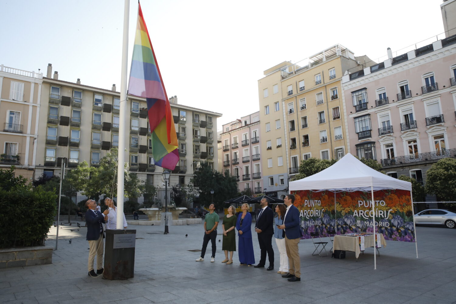 El delegado de Políticas Sociales, Familia e Igualdad, José Fernández, ha presentado hoy el nuevo diseño distintivo de los Puntos Arcoíris que el Ayuntamiento de Madrid instala en fiestas municipales y eventos en la ciudad para sensibilizar contra la lgtbifobia y atender a posibles víctimas. La nueva imagen, más reconocible para facilitar una mejor identificación de estos espacios, se ha dado a conocer en el acto de izado de la bandera LGTBI que el propio Fernández y otros miembros del Gobierno municipal han realizado en la plaza de Pedro Zerolo junto a la asociación Diversa Global con motivo del Día Internacional del Orgullo LGTBI, que se conmemora cada 28 de junio.
