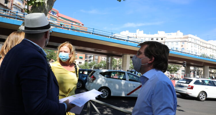 El alcalde de Madrid, José Luis Martínez-Almeida, ha visitado esta tarde el entorno del puente que une las calles de Joaquín Costa y Francisco Silvela para conocer sobre el terreno los planes de desmontaje de la estructura y el operativo de movilidad puesto en marcha en la zona. El alcalde ha estado acompañado por la delegada de Obras y Equipamientos, Paloma García Romero, el delegado de Medio Ambiente y Movilidad, Borja Carabante, y la concejala de Chamartín, Sonia Cea.