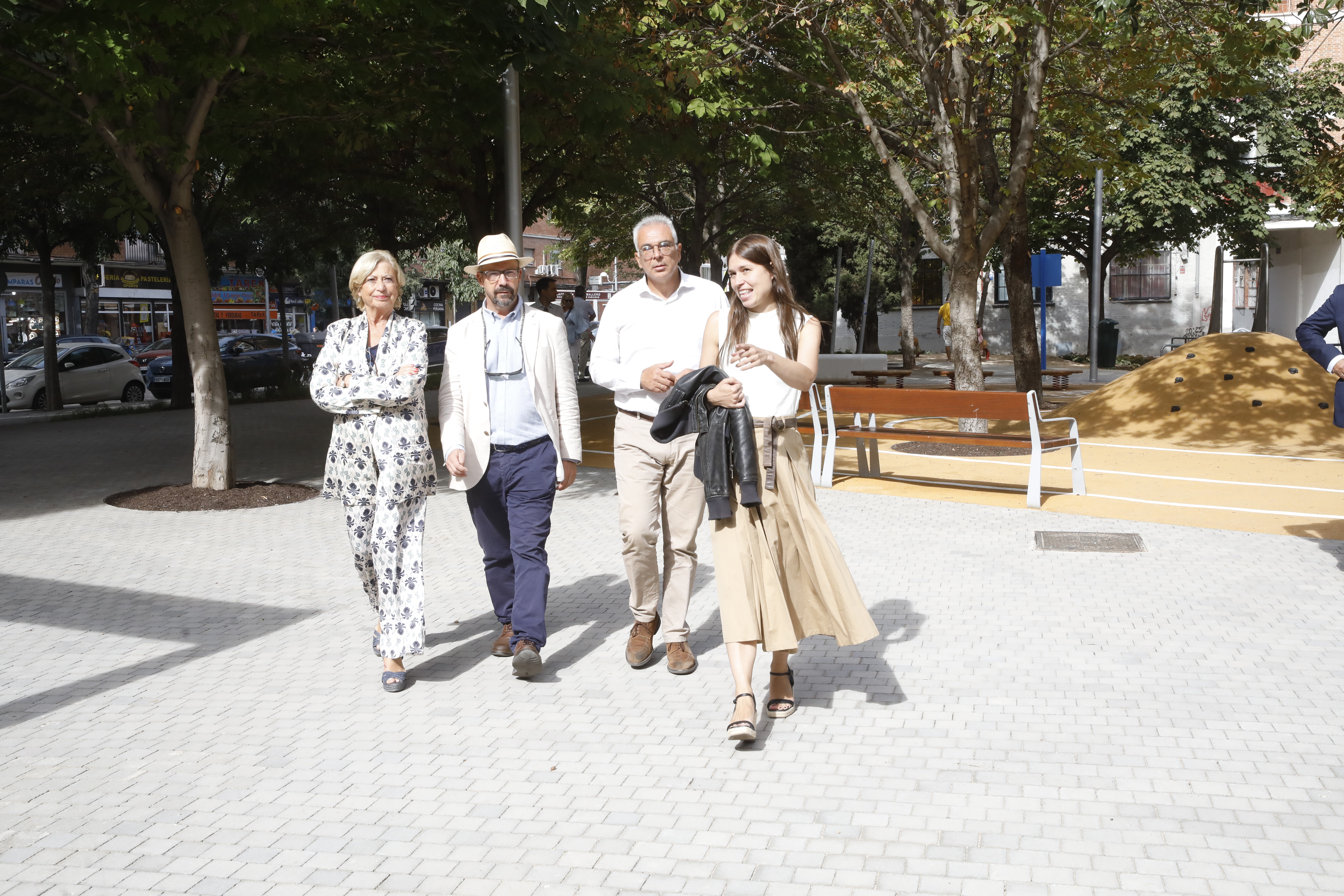 La delegada de Obras y Equipamientos, Paloma García Romero, acompañada por el concejal de Carabanchel, Carlos Izquierdo, ha visitado hoy la plaza del Valle de Oro, cuya remodelación acaba de finalizar. El proyecto, que ha abarcado una superficie de 2.651 m2, ha contado con una inversión de 434.000 euros y nace de una propuesta ciudadana en el marco de Decide Madrid. La intervención ha tenido como objetivo la reurbanización de la zona sur de esta plaza para recuperar la calidad estancial del espacio permitiendo la interacción de los vecinos, una mayor accesibilidad y la inclusión de zonas de juego infantil y de mayores.